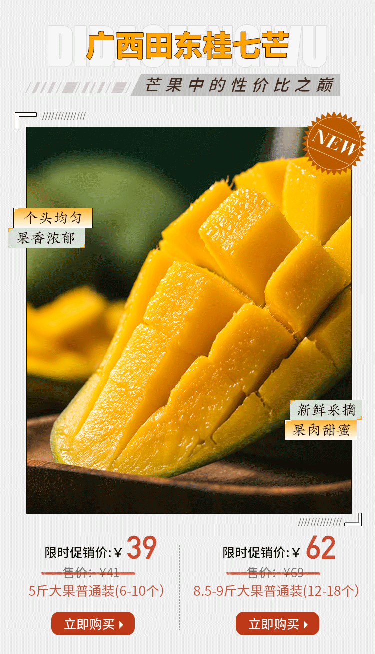 终于,等到了今年刚刚下树的桂七芒,超激动的!对于熟悉它的朋友们来说,无需多言,直接下单即可。今年风物君还给你们准备了多重组合,比如桂七芒和仙进奉荔枝的夏日鲜果“王炸”组合;比如桂七芒和黄金百香果、香水柠檬的快手果茶组合,组合下单,至高可省60元哦!