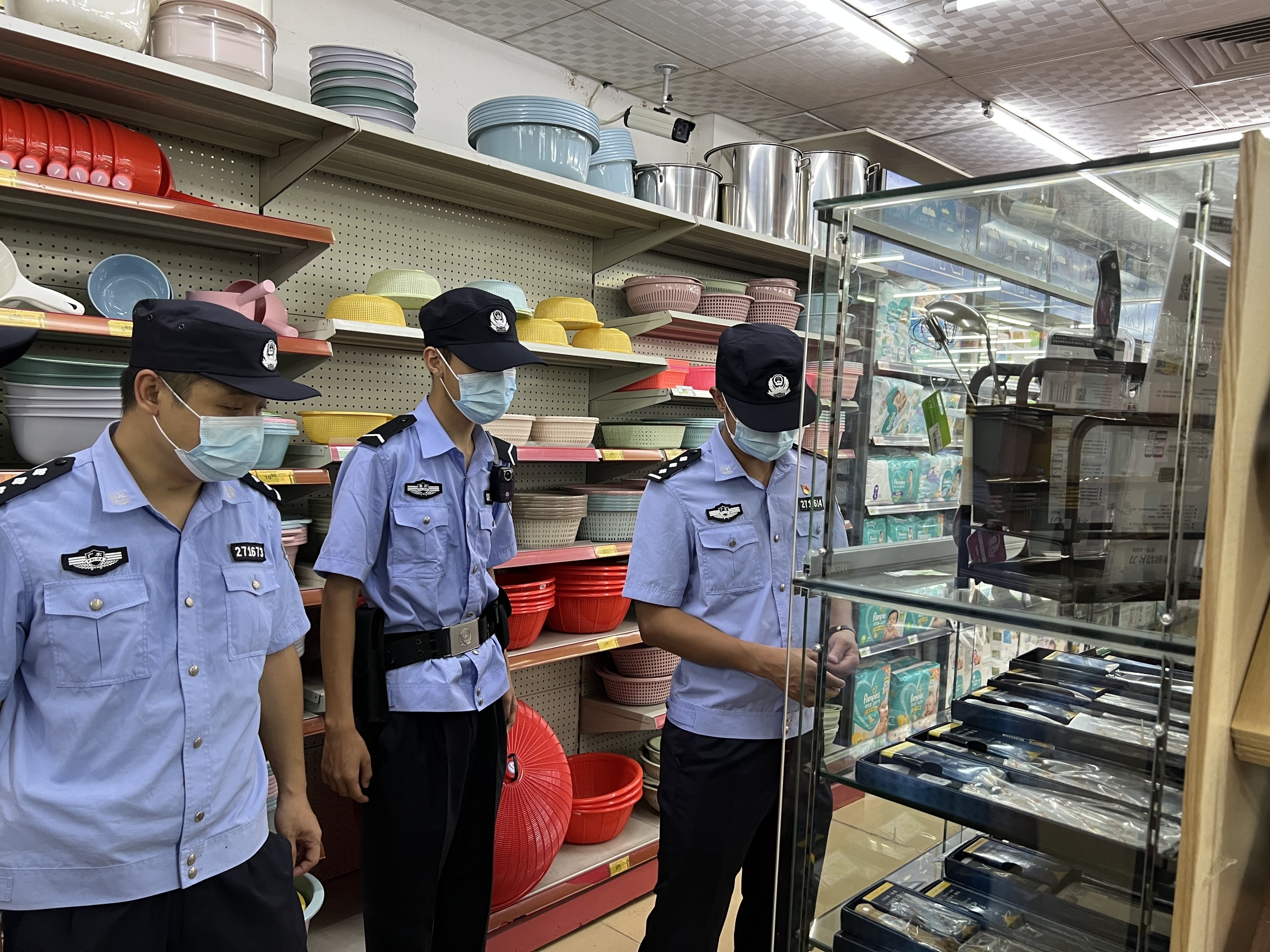此次行动共出动警力59人,车辆17台,检查涉水安全风险点31个、物流快递16间、刀具销售点24间、危爆单位9间、其他场所17间,发现5个涉水安全风险点存在无围栏、无监控、无标识,已通报当地镇政府,并要求跟进落实整改;发现1间商铺销售刀具存在无台账、刀具没有锁好等问题,已责令其立即整改。