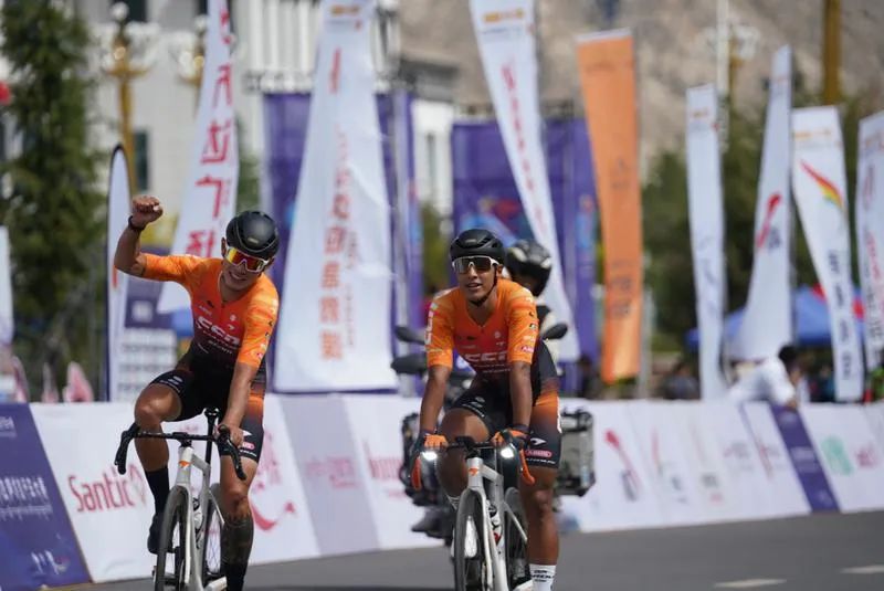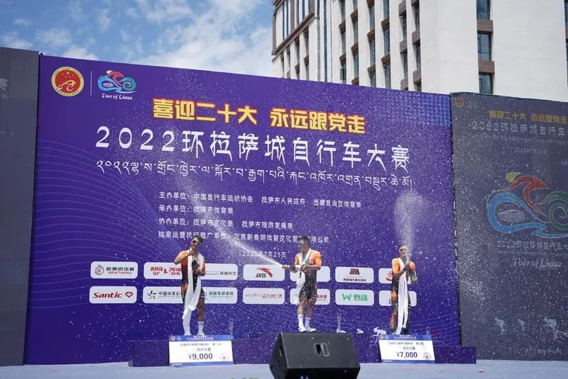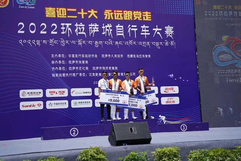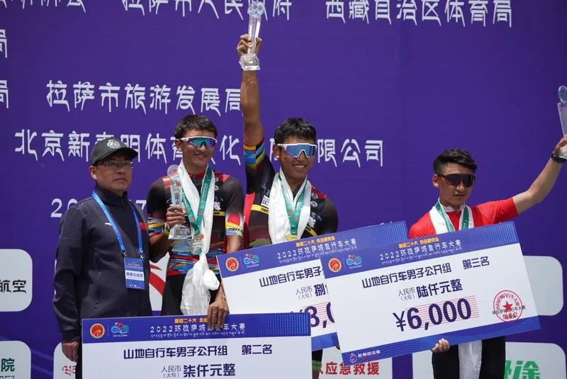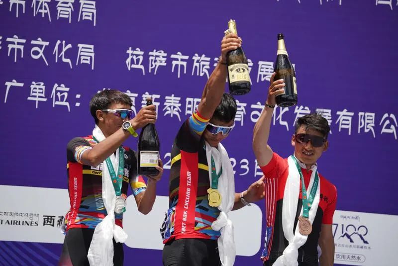来自CCN瑞豹中国车队的侯栋乙、胡志超、孙小龙摘得公路自行车男子精英组冠、亚、季军。侯栋乙说:我是第一次来拉萨参赛,我觉得拉萨是一个很美的城市,很整洁,很干净,赛事保障方面也很周到、很贴心。