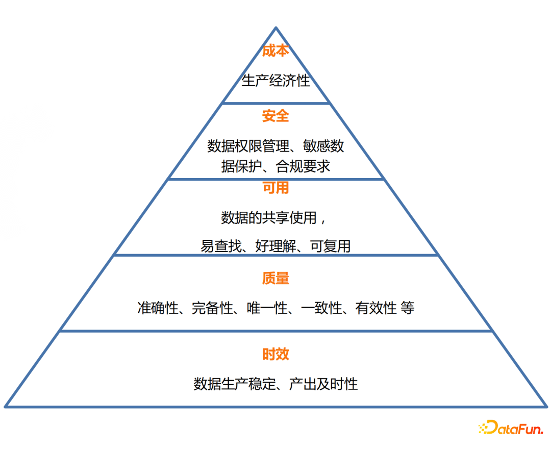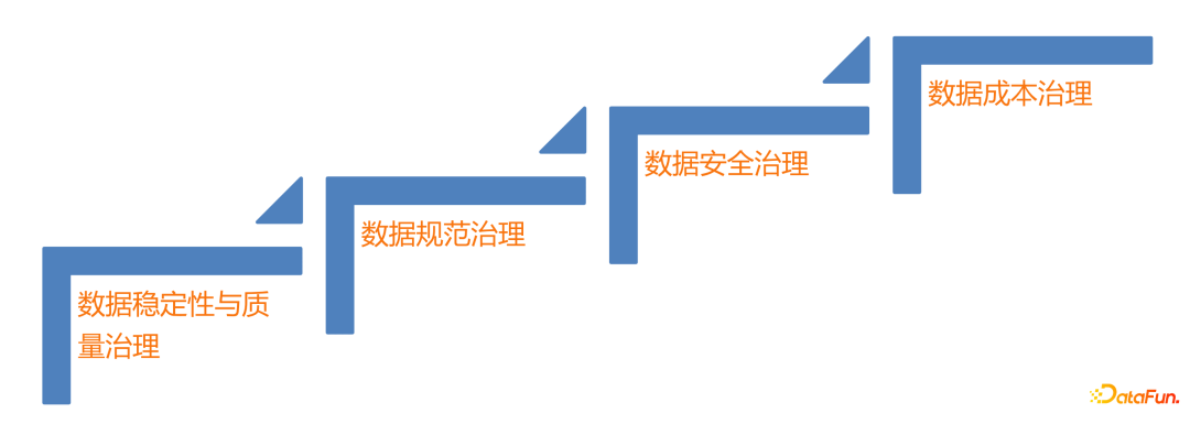 随着数据行业的发展,数据治理的内涵也逐步泛化,涵盖了更多的方面和层次,比如数据发现可用,数据及时稳定产出,数据质量保障,数据安全合规,数据生产的经济性等。对于企业的不同发展阶段,数据治理的需求也存在着差异。