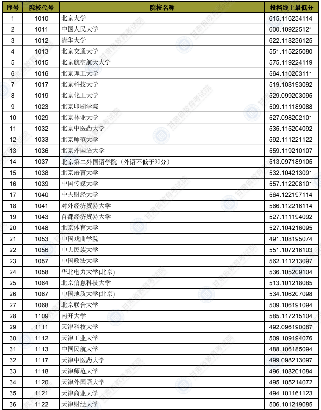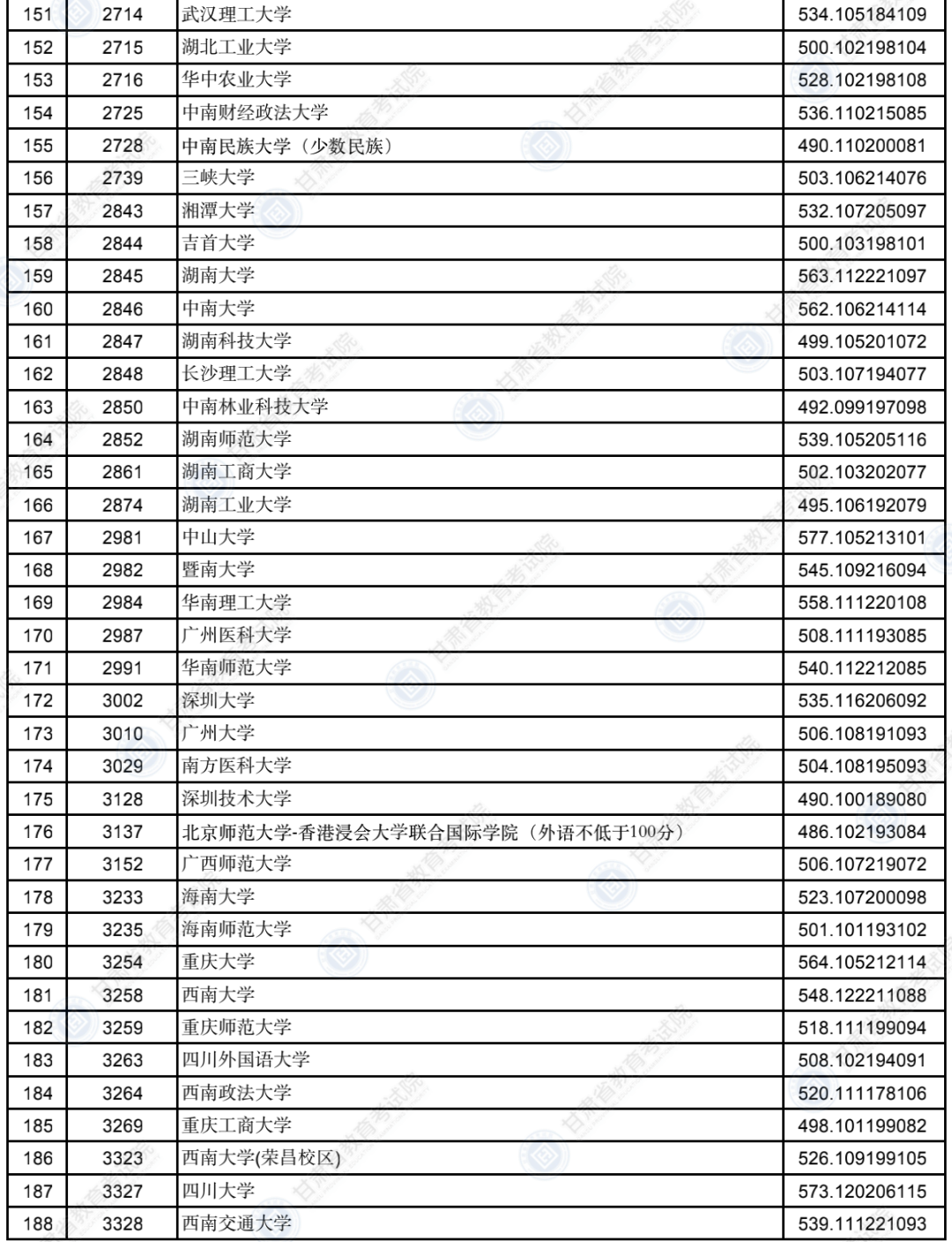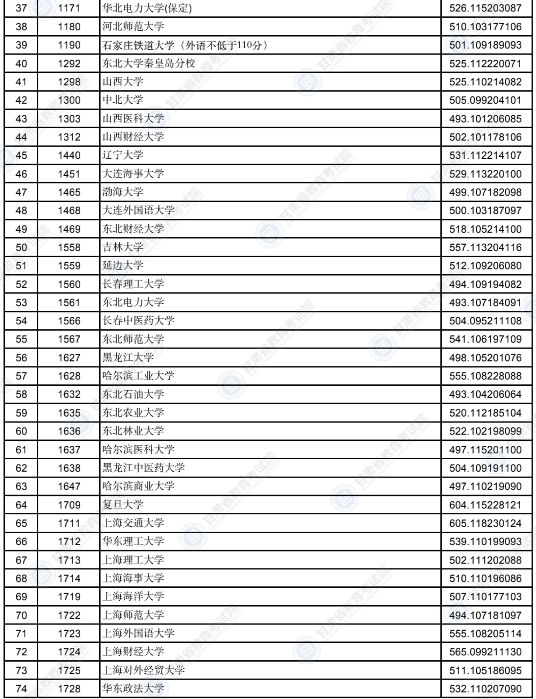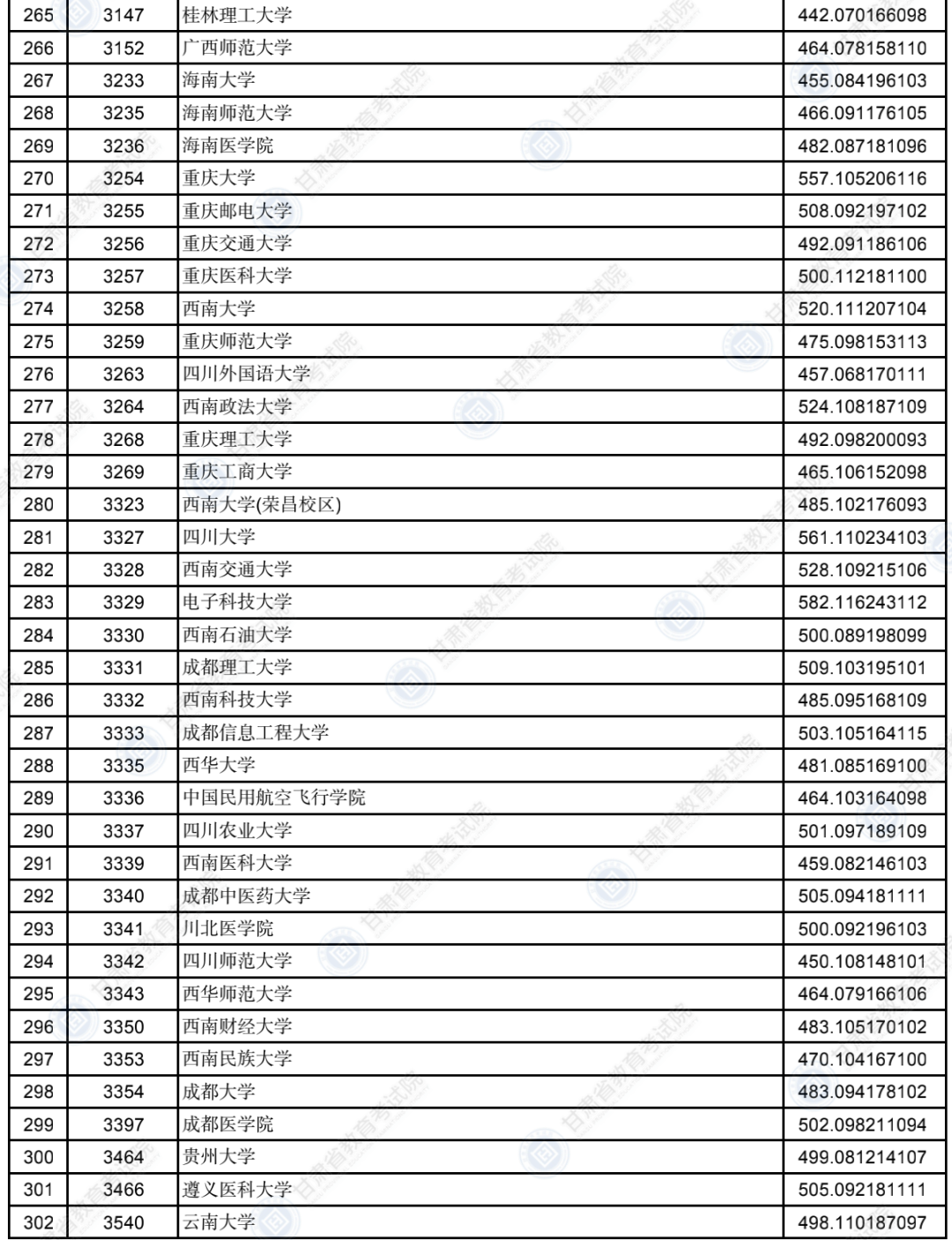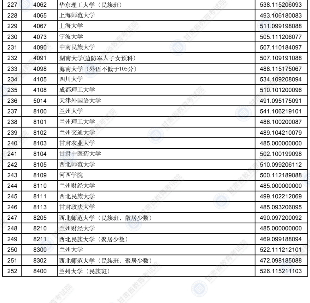 3.部分院校有多种招生类型,同一所院校会出现不同的投档最低分,具体请根据院校代号对照《2022年甘肃省普通高等学校招生专业目录》。