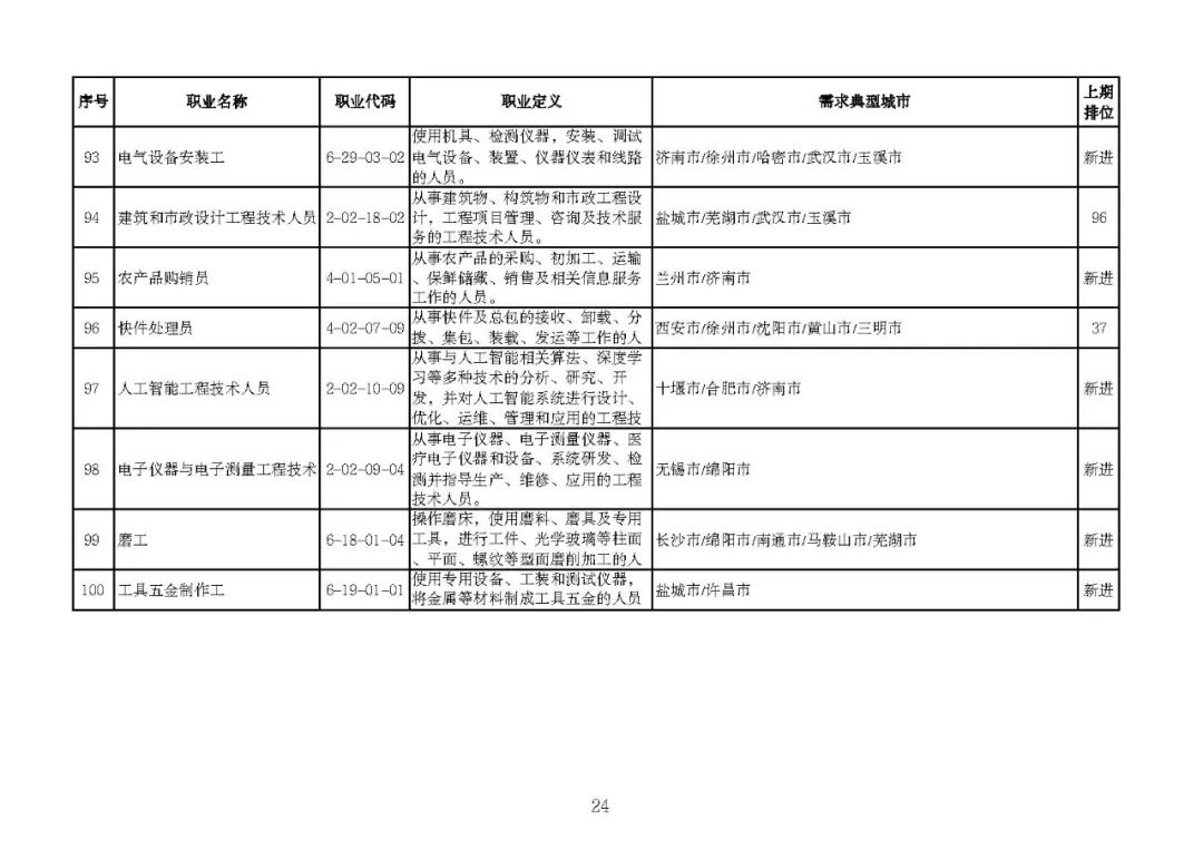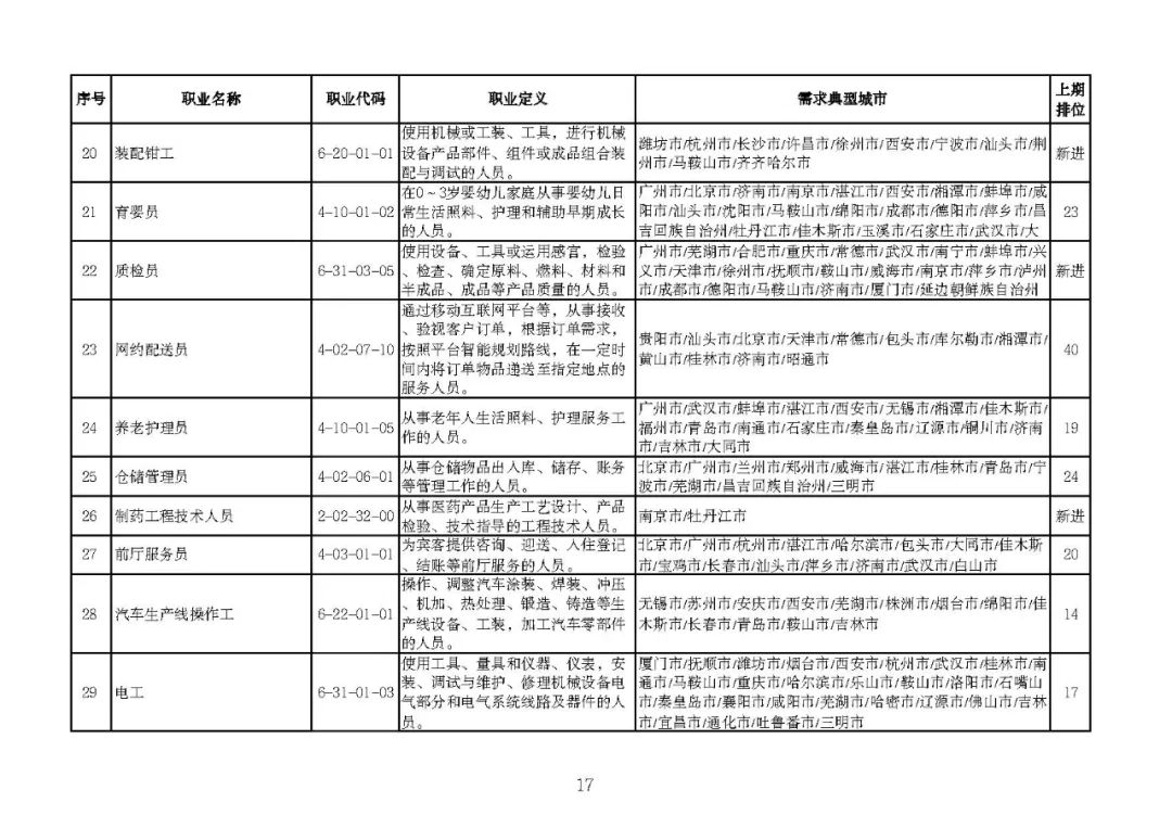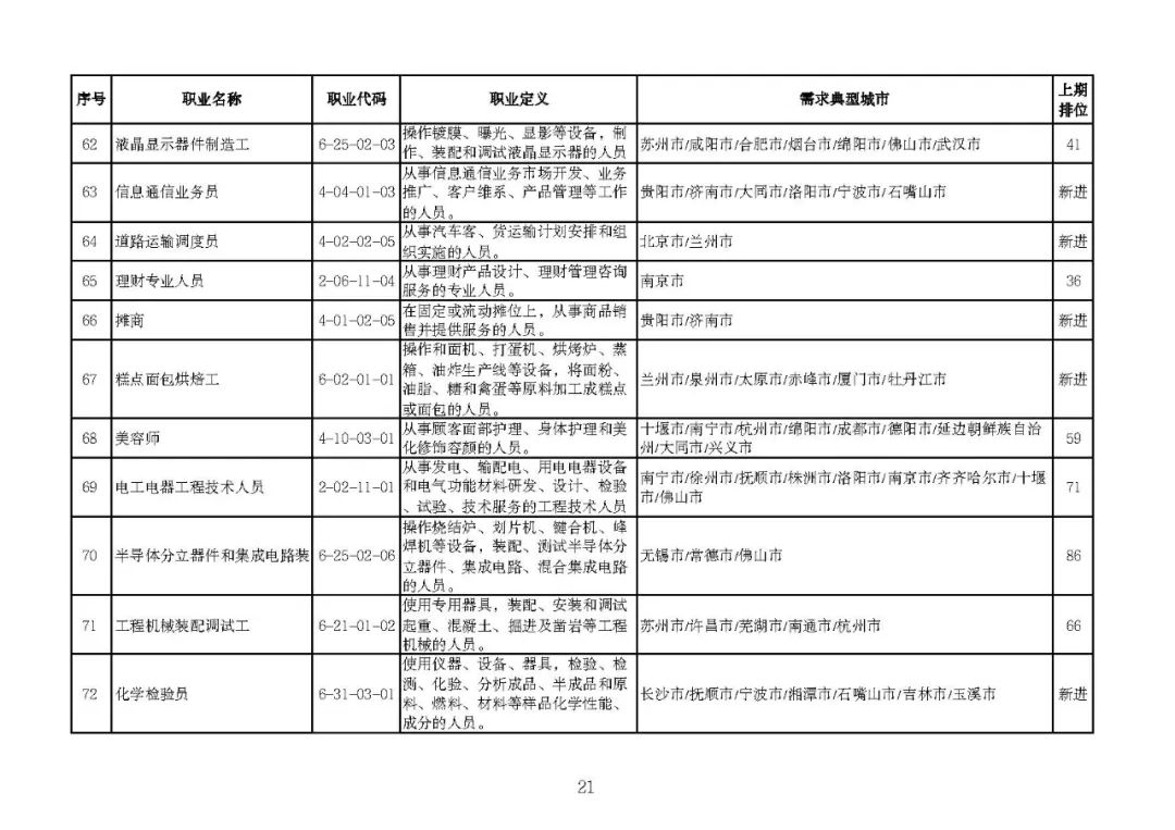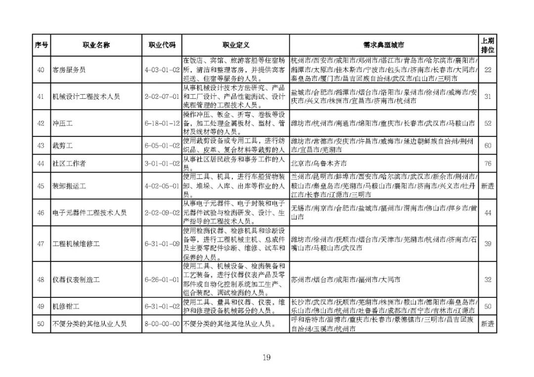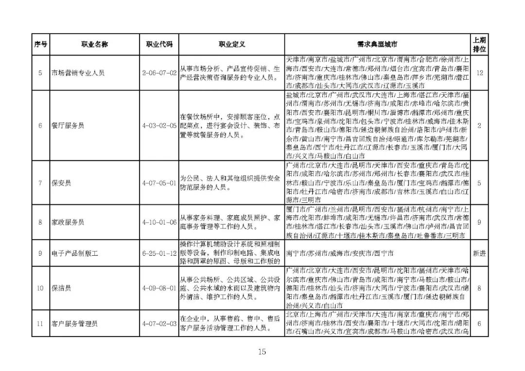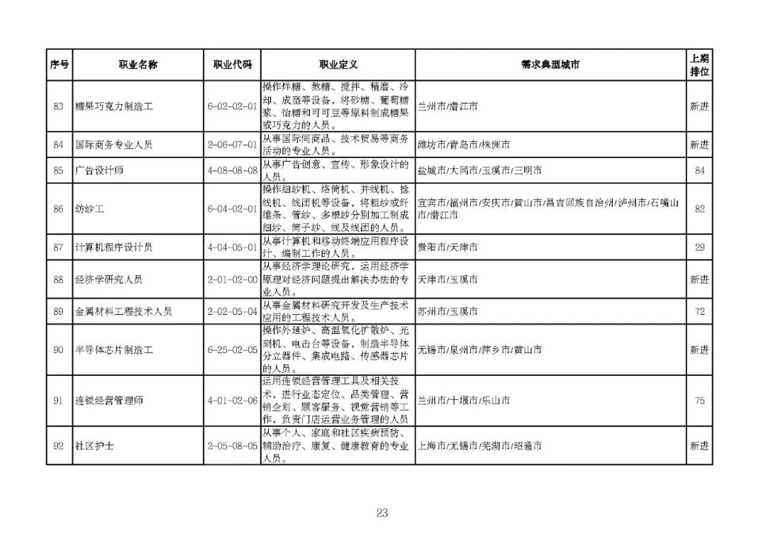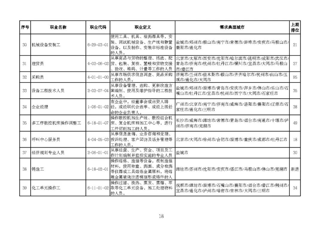 该排行是由中国就业培训技术指导中心组织102个定点监测城市公共就业服务机构,收集汇总二季度人力资源市场供求关系较为紧张的招聘、求职需求职业岗位信息形成的。