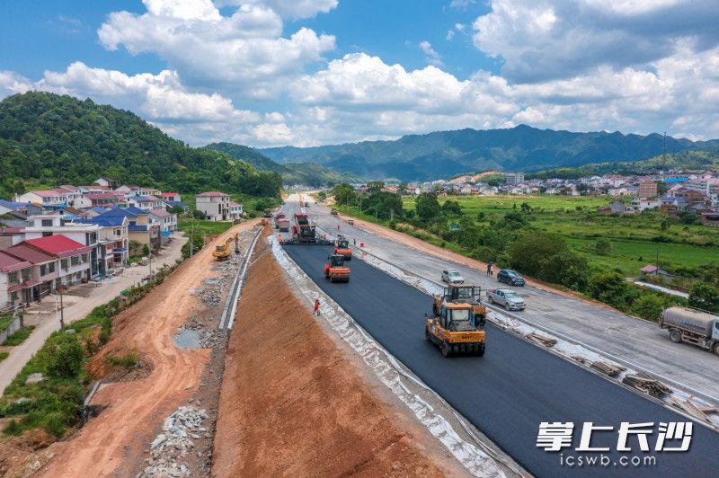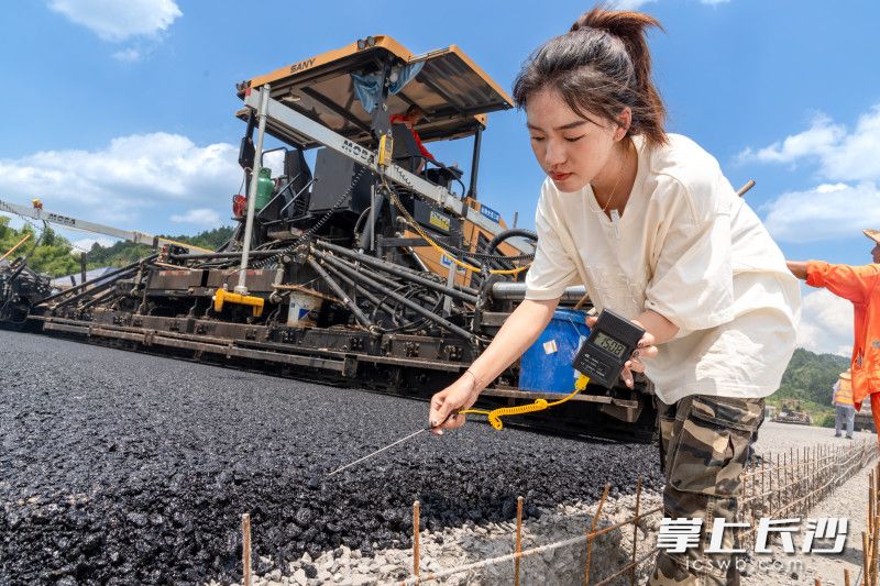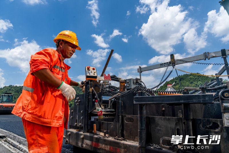 23日,大暑,一年中最炎热的时节。不过,对于金阳大道项目现场施工人员来说,头顶似火骄阳还算不了什么,140℃以上沥青的灼人热浪才是真正的“烤验”。当天,长沙市“双五”工程和“强省会”战略重点交通建设项目——全长16.7公里的金阳大道三期开始摊铺沥青。“预计9月15日可全部摊铺完成。”项目施工方相关负责人表示,目前绿化、交安等工程也在争分夺秒同步推进,以确保金阳大道全线10月1日前通车。