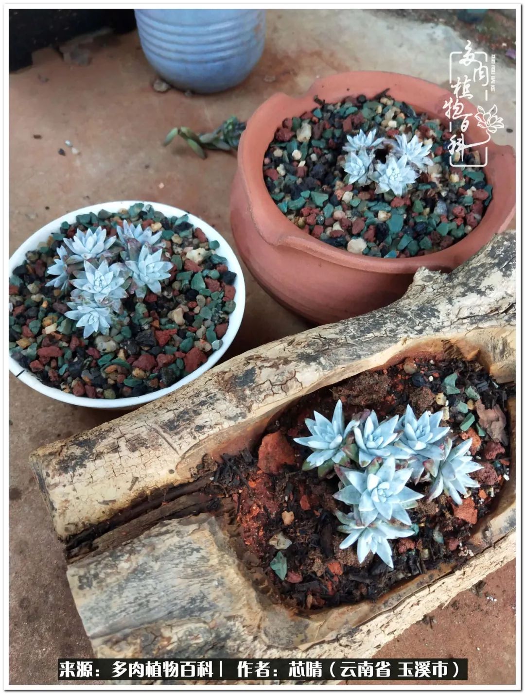白月影,肥嘟嘟的叶片 ,爆崽也快 ,图三是纯煤渣养的 ,为美观做了层铺面 。煤渣养肉只能根据自己气候来试种 ,泡水去碱 ,敲碎就可种肉 , 可在中间部分加适量肥料,因为是高温烧制过的 ,不易长杂草省心。