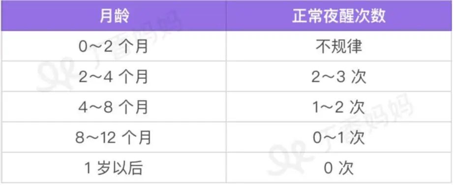 首先,通过月龄来判断宝宝的夜醒次数是否超出正常的夜醒次数,正常的夜醒次数可以参考下表[2]: