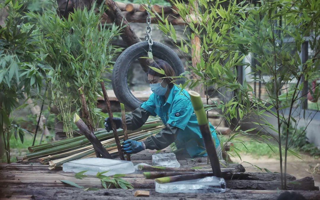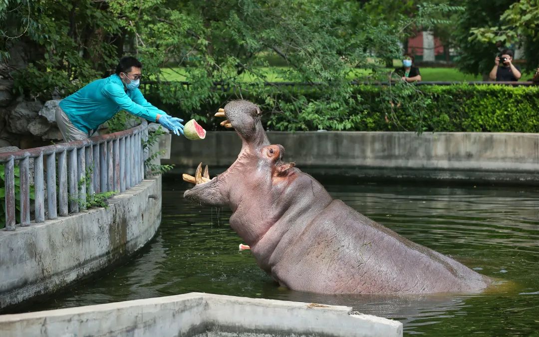 今年夏季,我国多地出现持续性高温天气。据悉,入夏以来,北京动物园在室外运动场添加冰块,并依靠喷淋、喷雾、泳池、泥塘等为动物降温,更换应季多汁的果蔬为动物补充水分,保障它们舒适地度过伏天。
