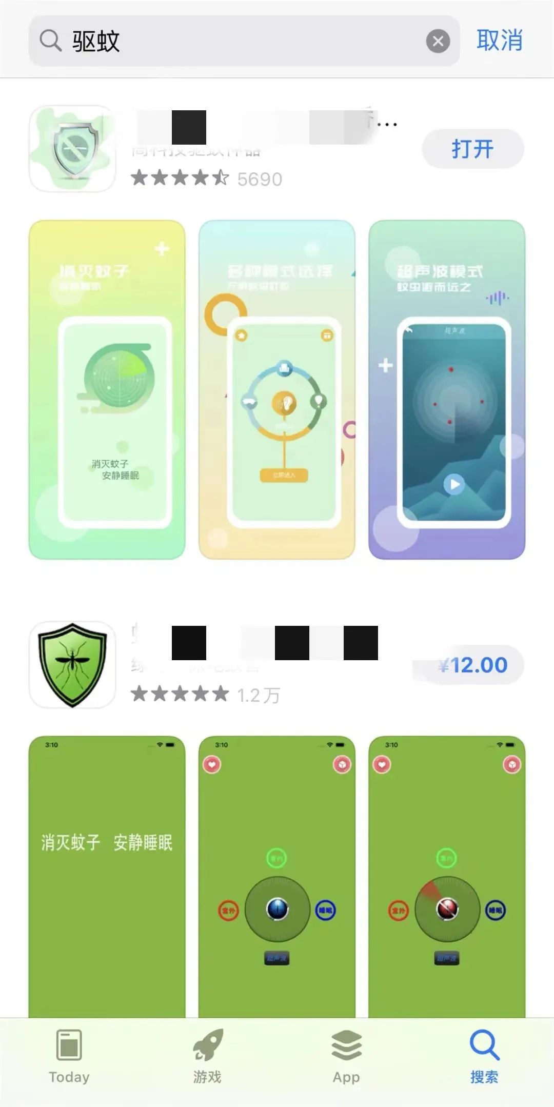 前不久,贾女士听朋友说手机应用市场有多款驱蚊软件,可以下载试试。贾女士半信半疑地打开应用市场,发现还真有不少驱蚊App,有些还要付费下载。