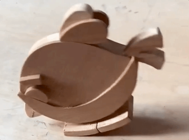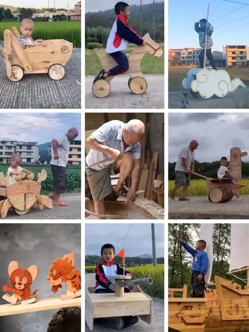 不用一根钉子、一滴胶水,也不用任何现代机械工具,仅凭一双巧手,就将寻常木头打造成各种各样的载具和玩具。