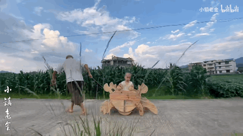 一位古稀老人,带着孙子,推着“鸭子车”“螳螂车”“螃蟹车”……穿梭在田间地头。