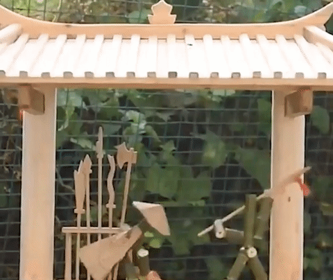 若嫌太单调,那就摆上擂台,请两个竹节人,来一场精彩的武术表演。
