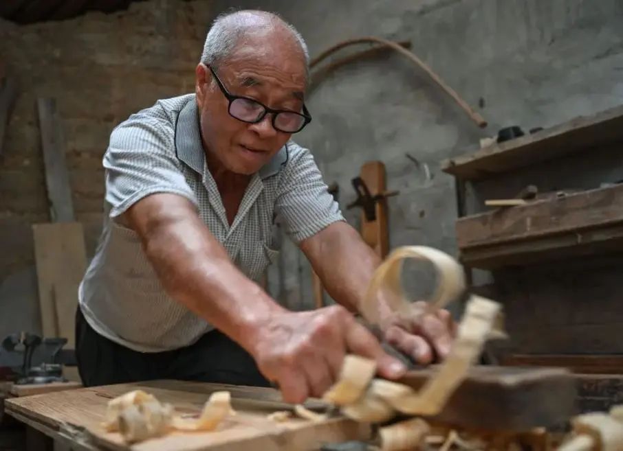 不过,让李石水老怀安慰的是,常年在外打工的儿子和儿媳开始回乡创业。儿子李跃金创建了一个视频号,一边将电商和传统木工相结合,一边用镜头记录下手艺人的日常生活。