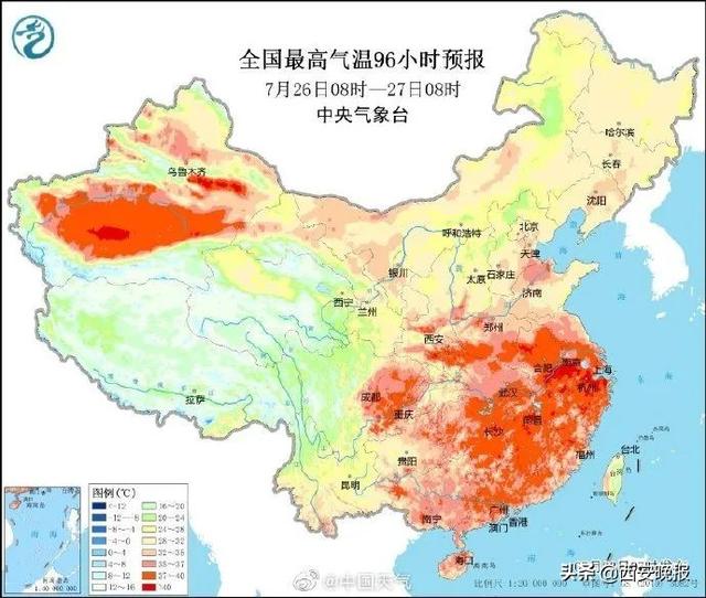 26日:全省多云间阴天,陕北北部部分地方、关中局地、陕南部分地方有小雨或雷阵雨。关中南部、陕南东部有38℃高温天气。