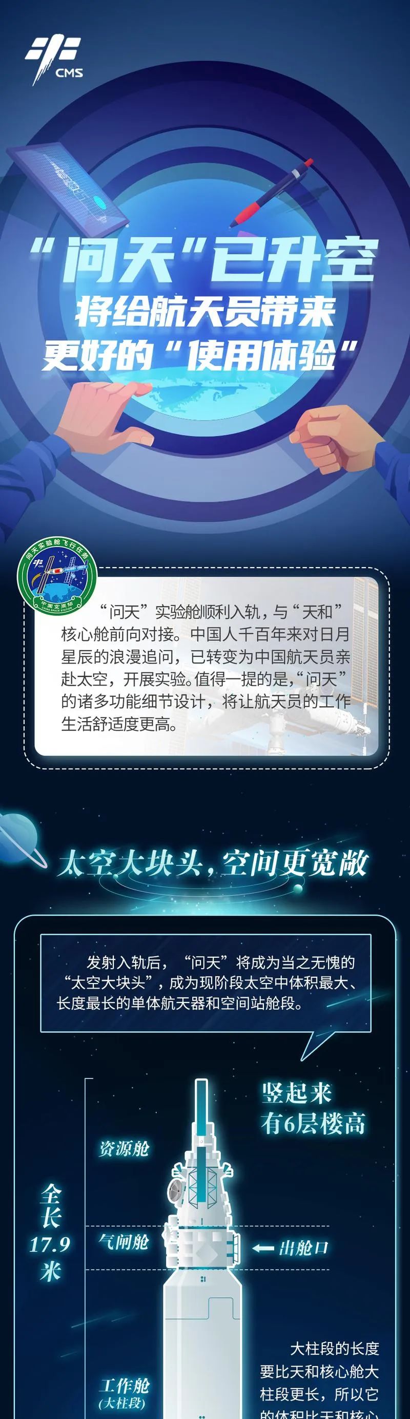 拓展了航天员在轨的工作和生活空间