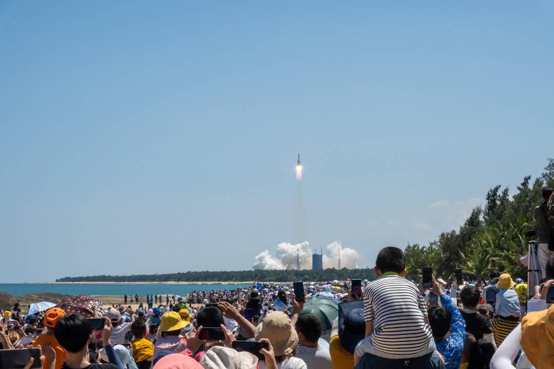 7月24日14时22分,问天实验舱和长五B遥三运载火箭在文昌航天发射场发射升空。摄影:杨峰