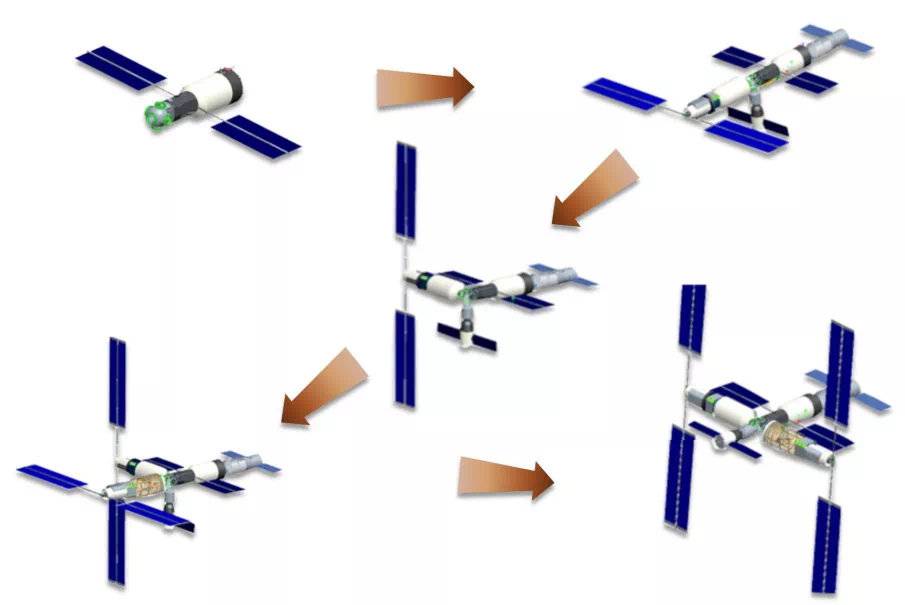 中国空间站在轨组装过程。图源:中国载人航天工程办公室