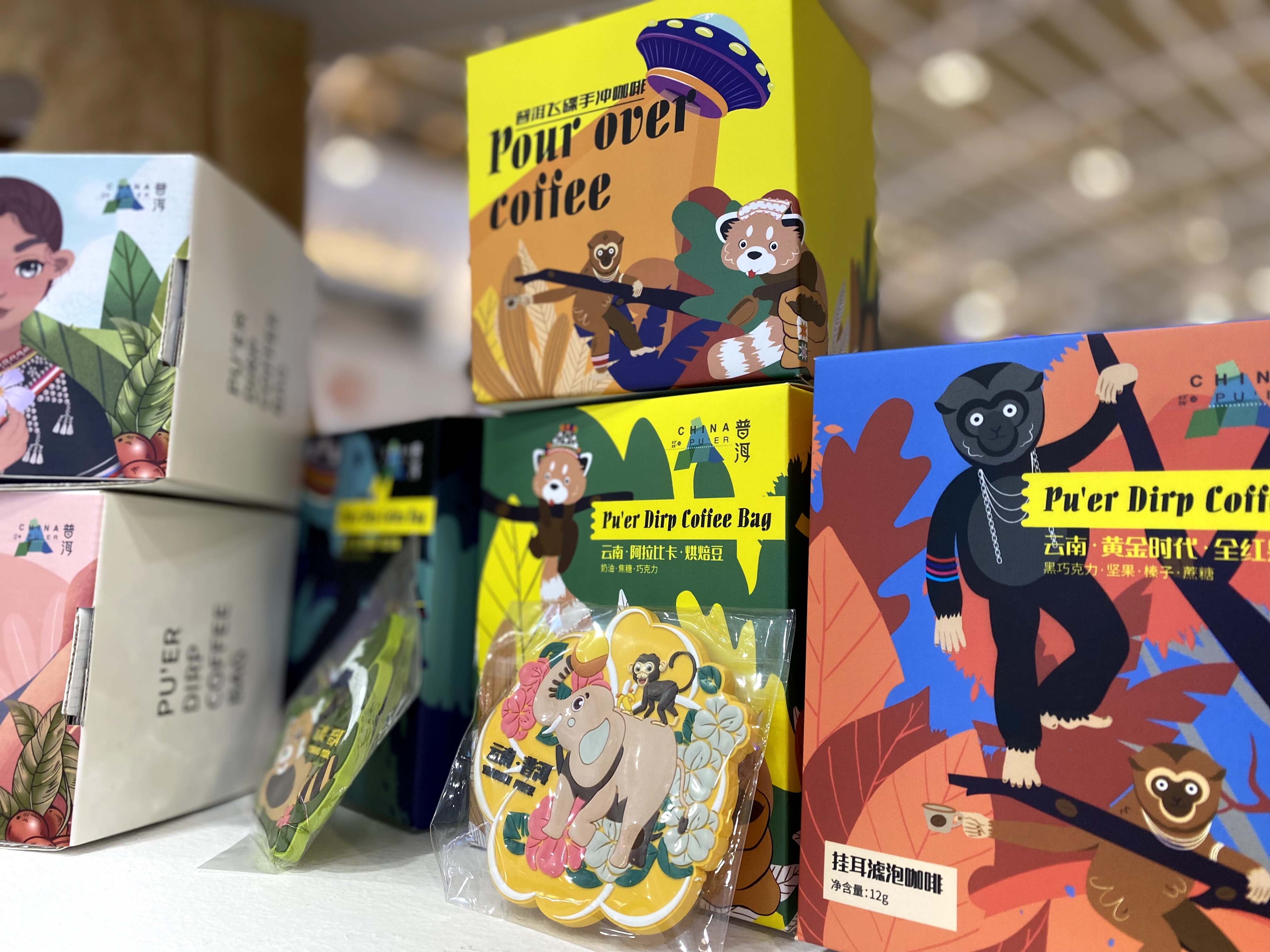 “普洱的旅游很丰富,咖啡也不错。”来自江西的沈艺在中国普洱咖啡会客厅展台品尝着艾哲咖啡带来的“名片咖啡”并发出赞美。在该区域,还有昕艺咖啡带来的咖啡文创产品——咖啡盲盒、咖啡香薰、灰碟包咖啡等吸引了众多关注。