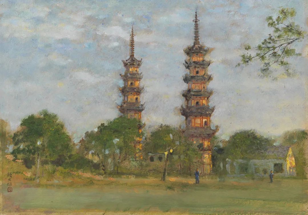 苏州美专创始人之一颜文樑 油画 《双塔 》