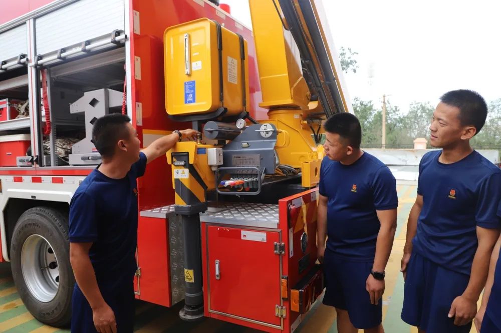 在学习过程中,老特种车辆驾驶员胡丽详细讲解了执勤车辆的基本性能、执勤车辆的特有功能以及在具体使用过程中所遇到的常见故障和维护方法,并对水罐消防车和抢险救援车的操作进行了详细的示教。