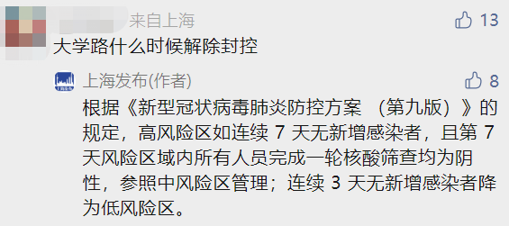 虹口区四川北路街道、宝山区大场镇全域实施常态化防控措施。上海市其他区域风险等级不变。