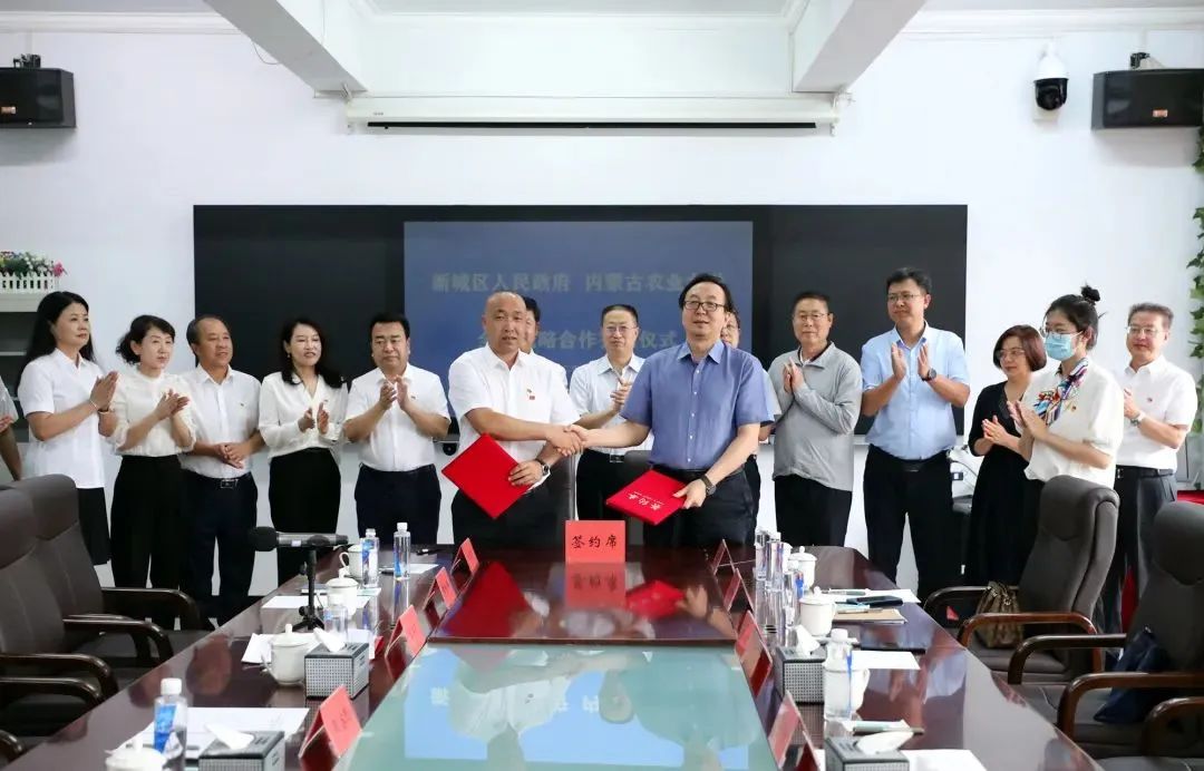 内蒙古农业大学副校长李兴旺同新城区政府副区长海明代表校地双方签订了合作协议。