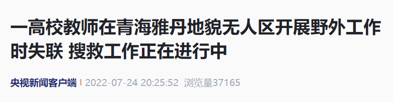 一高校教师在青海雅丹地貌无人区开展野外工作时失联 搜救工作正在进行中
