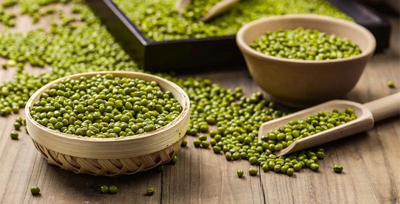 绿豆味甘,性寒,归心、胃经,有清热、消暑、利水、解毒的功效,可用于暑热烦渴、感冒发热、吐泻、水肿尿少。
