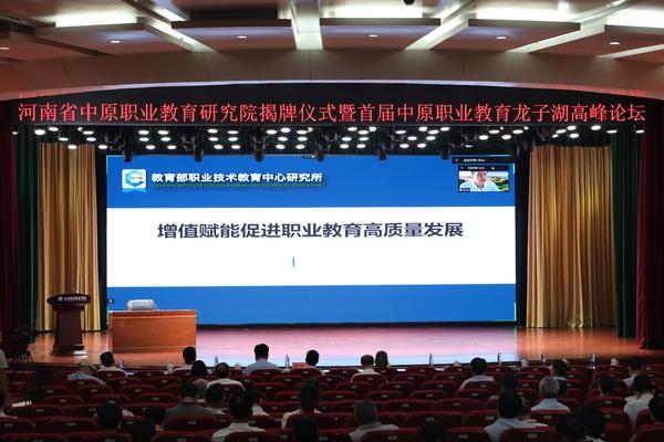 揭牌仪式后,首届中原职业教育龙子湖高峰论坛举行。论坛以“新时代 新职教”为主题,由河南经贸职业学院党委书记姚勇主持,教育部职业教育发展中心副主任曾天山以《促进职业教育高质量发展的着力点》为题作线上学术报告,北京师范大学国家职业教育研究院院长和震作《职业教育高质量发展的法律保障》专题报告。(李树华 夏维华)