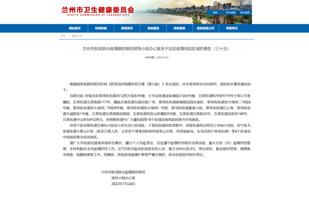 安宁区孔家崖街道大青山片区(南至万里人防,北至安宁滑雪场和保利领秀山交界,西至蚂蚁沟,东至民政厅林场东侧)等4个区域由中风险区降为低风险区。