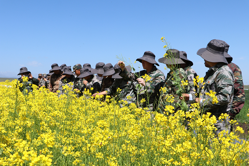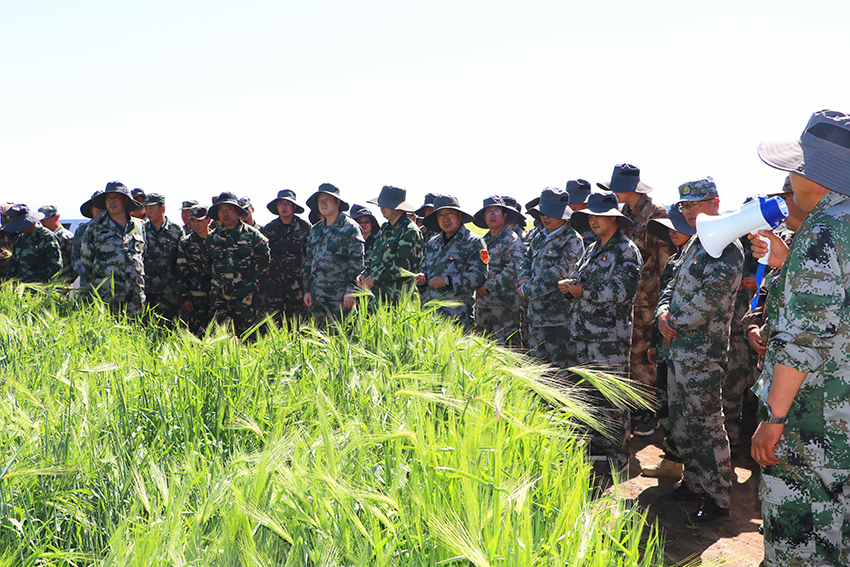 山丹讯 7月24日,为进一步夯实农业基础管理工作,山丹马场二场组织开展了2022年查苗观摩交流大会,实地查看青稞、大麦、油菜、燕麦草和科技试验田,就种植结构、基础作业、种肥用量及田间管理等情况进行了答疑,并介绍传统作业耕作的方法和运用现代农业科技耕作如何提升经济效益进行了解答。