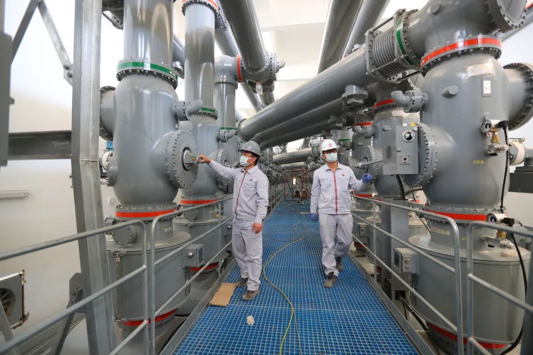 埃及埃克萨迪亚变电站项目建设现场,中国工程师在对相关设备进行检查。新华社记者隋先凯 摄