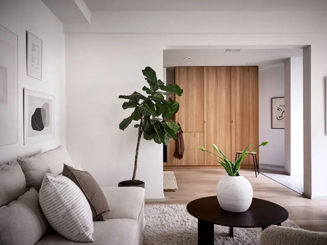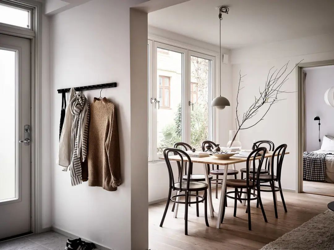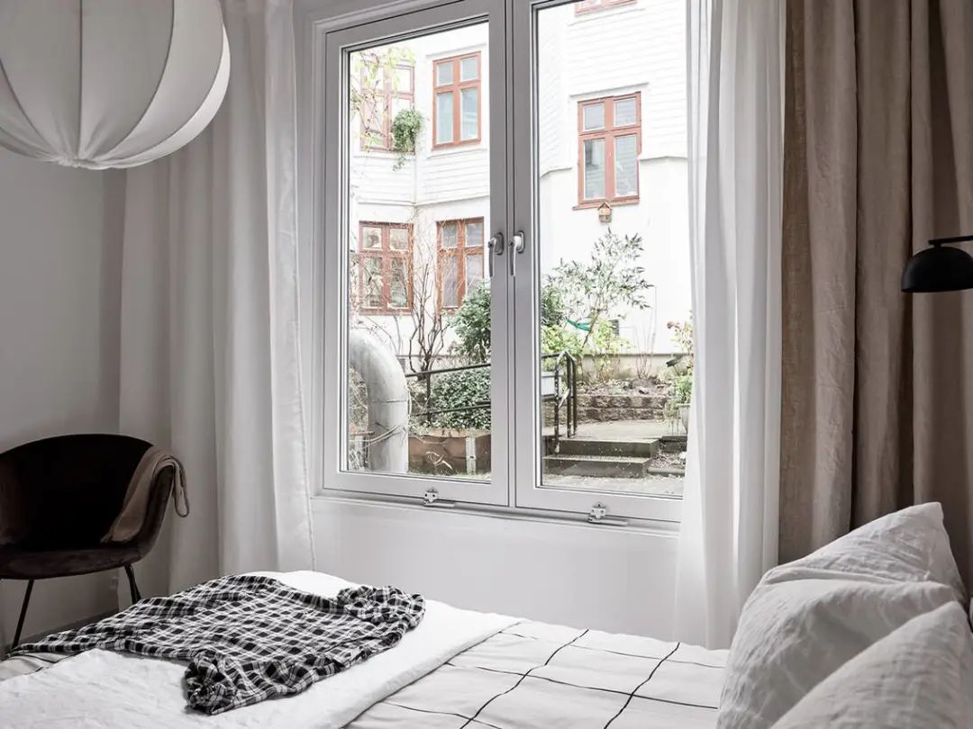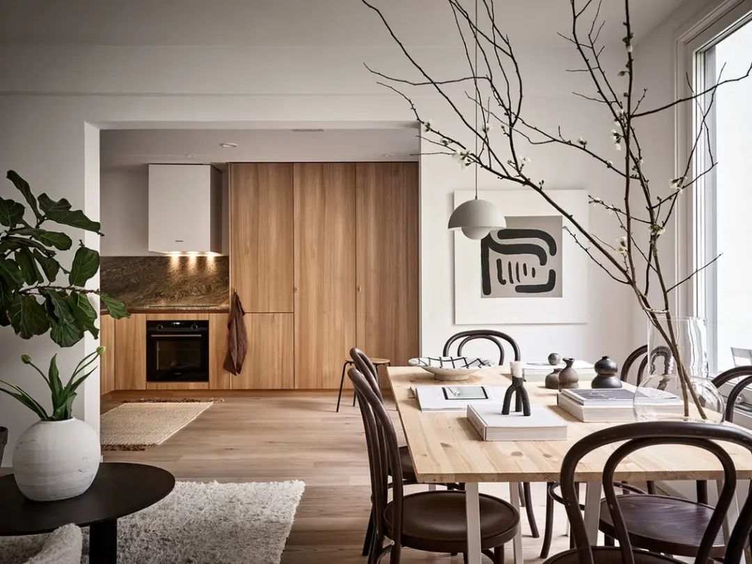 今天分享的案例位于瑞典马约纳市。这座公寓在一层,外边有一处空地用于日常休憩;同时,2021 年才完成装修的缘故,整个空间看上去特别新。
