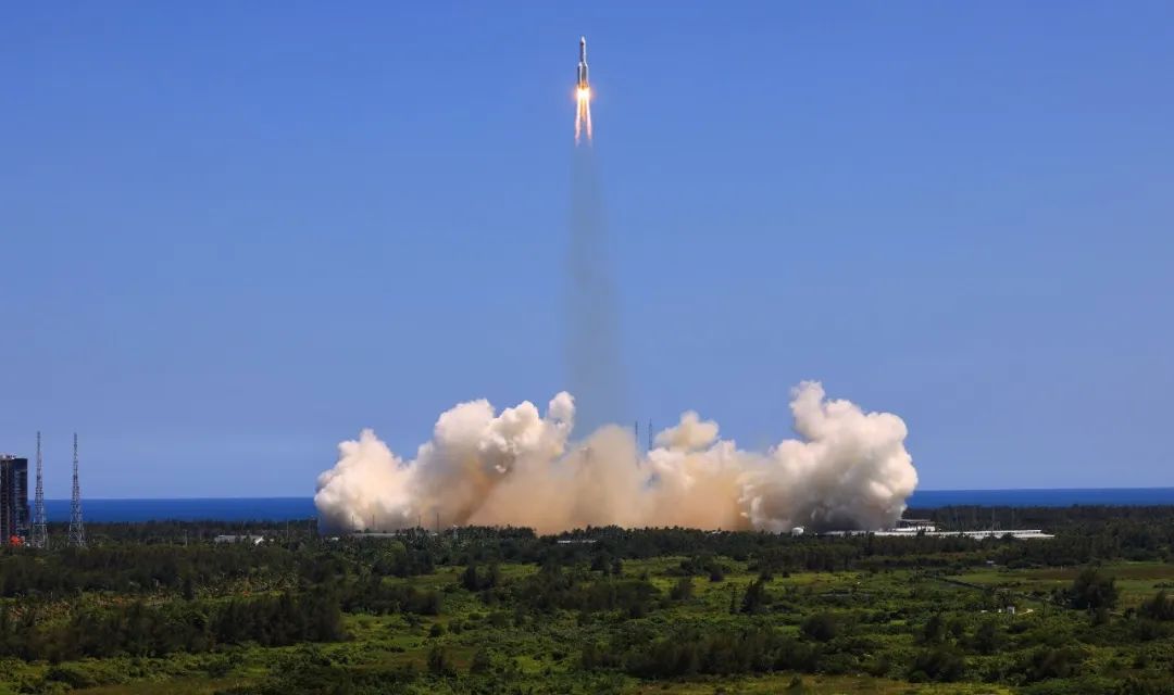 “5、4、3、2、1,点火!”14时22分,烈焰轰鸣,长征五号B运载火箭犹如一条巨龙,托举着问天实验舱一飞冲天。