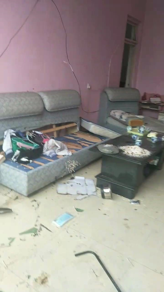 靳江浩说,事发到现在,他一直在医院里没有回过家。邻居和亲戚们告诉他,爆炸发生后,他家里的五间房都有不同程度的破损,其中卧室和厨房损毁最为严重,房间的墙壁上都是漆黑一片,天花板大面积掉落下来,门窗也都已完全变形,家具基本被烧毁,地上更是一片狼藉。看到邻居拍摄的现场视频,他已经认不出这是自己的家。