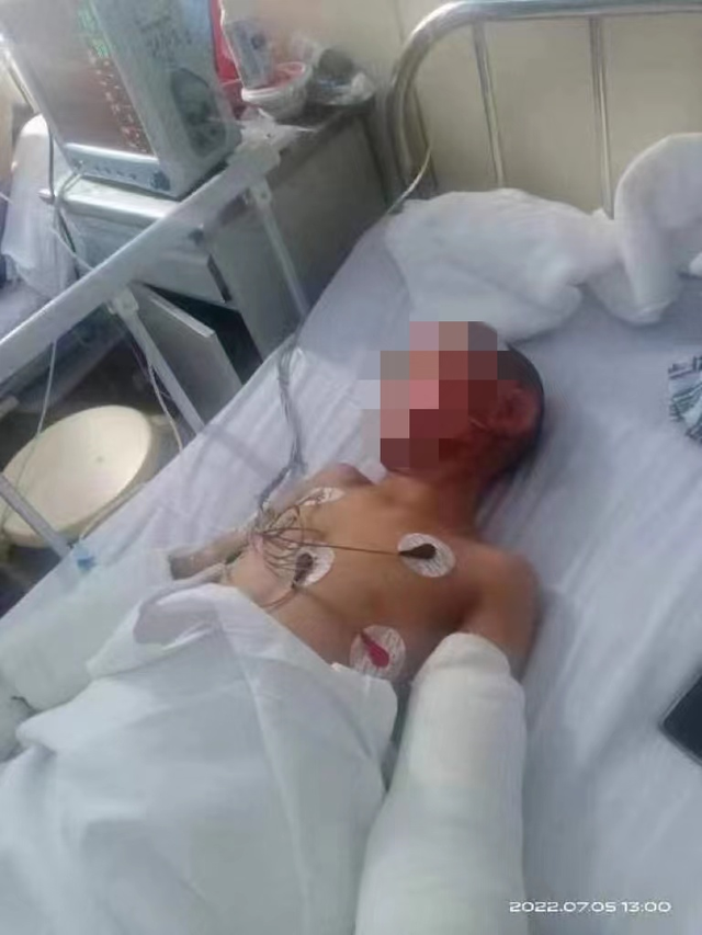 在医院门口,当救护车后门打开后,靳江浩简直不敢相信眼前看到的一切。“儿子身上到处是血,孩子的妈妈已经昏迷,面貌基本认不出来了,可以用面目全非来形容。”靳江浩心疼地说,到了医院,妻子和儿子直接被进了重症监护室。