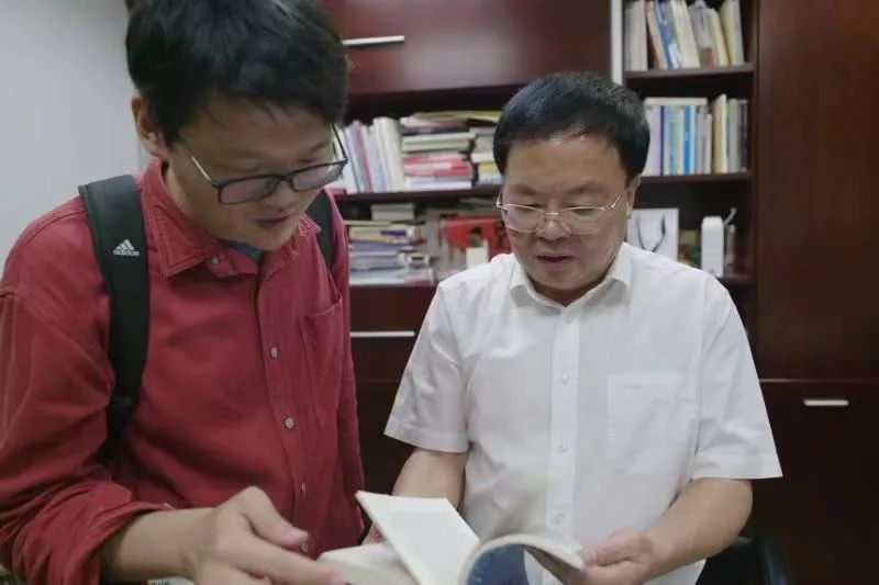 台州日报记者吴世渊(左)采访省委党校副校长陈立旭》。