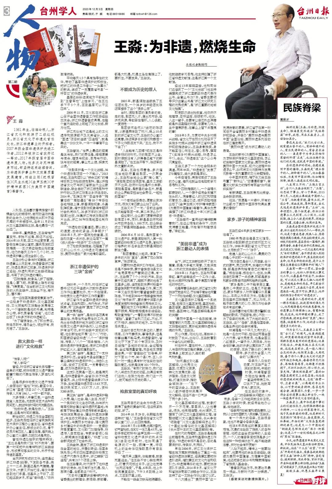 “人物”不断地捧出一份份精神大餐。比如第二期,讲述了首届中国非遗年度人物、浙江省文旅厅非遗处首任处长王淼的故事。这位从台州走出去的浙江非遗事业开拓者,因脊髓受损高位截瘫,曾5次进ICU抢救,每次脱险后都坚持继续奋战,为非遗燃烧生命。他说,“人站不起来,精神上一定要站起来”。为该报道配发的评论称其为“民族脊梁”,提炼并点赞他顽强拼搏的奋斗精神和一心为公的家国情怀,号召人们向王淼学习。再如,中国工艺美术大师吴子熊大度包容的精神和精益求精的匠心;考古者郑嘉励干一行、爱一行的职业坚守和严谨的研究态度;科技型企业家郑志国勇于创新、不断超越自我的时代使命感;年过九旬的小镇棋王王吕寿甘当伯乐、乐做人梯的奉献……台报记者用文字、图片、视频记录着这些优秀者寻常却不凡的生命形态和生活轨迹,抒写着他们的情怀、思想和风姿,同时也践行着媒体人的责任与担当。
