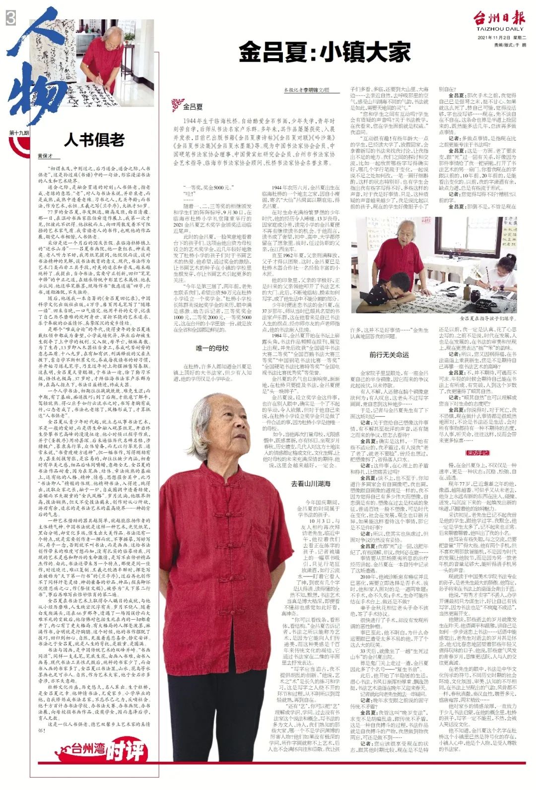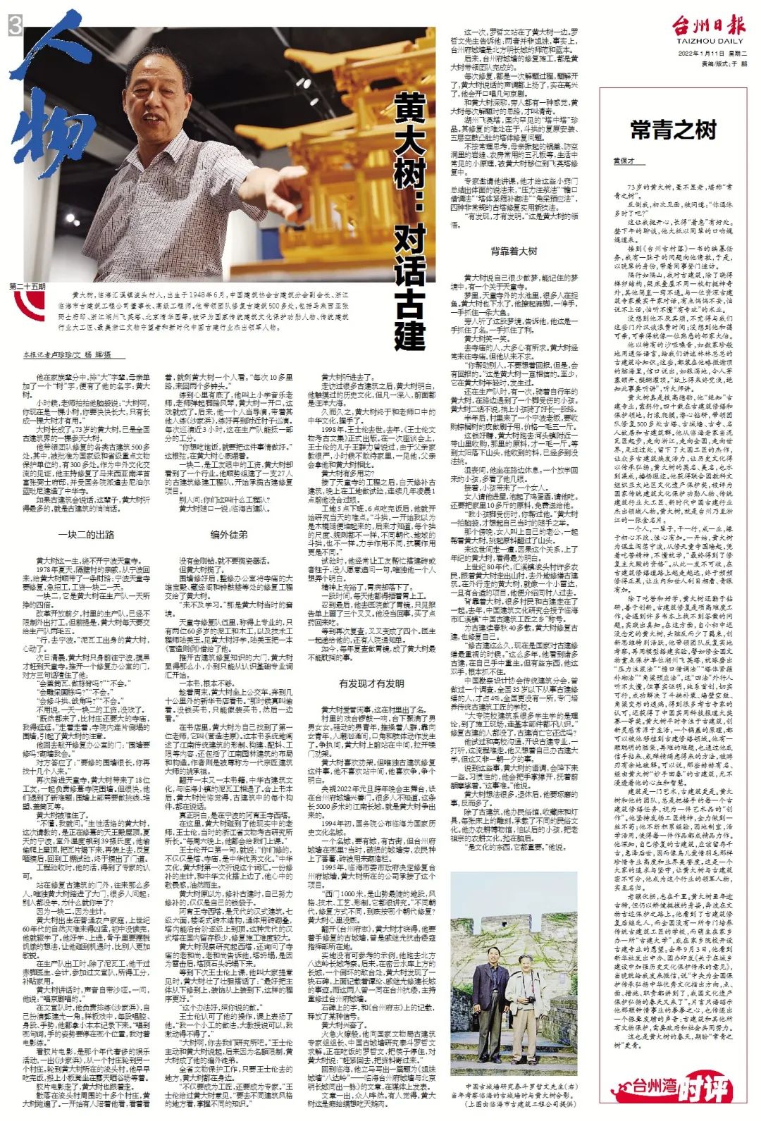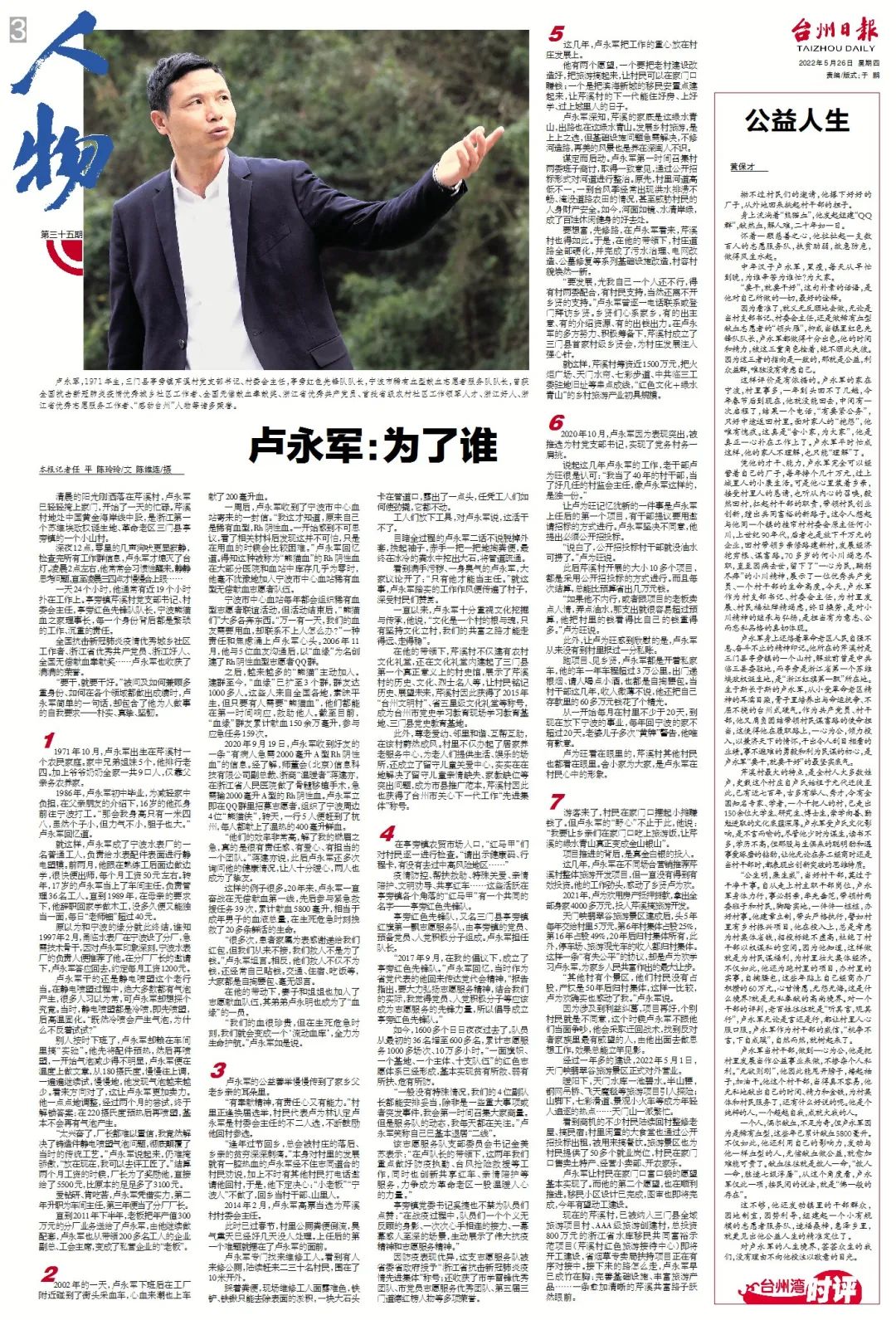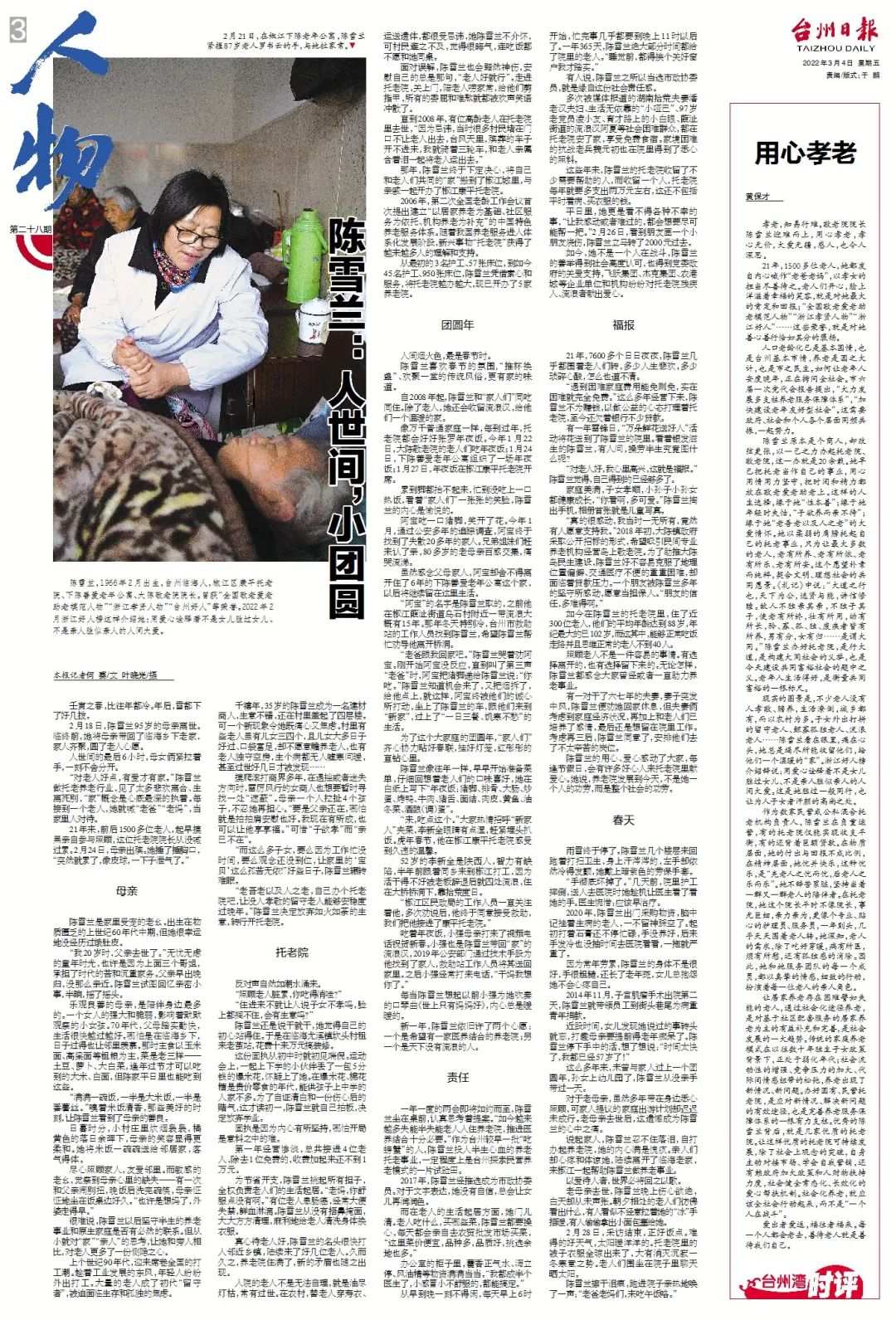 2020年11月开版的“人物”,至今已推出33期,报道了陈立旭、王淼、吴子熊、黄大树、詹耀良等一批各条战线中具有引领力、凝聚力、吸引力的“台州人”。它是人物报道的升级版,除了“一人一版”在报纸上推出,还试图聚合全媒资源,打通传播渠道,于融媒体语境中创新报道形式,探索个性化之路,提升“聚焦身边人、讲好身边事”的意义。