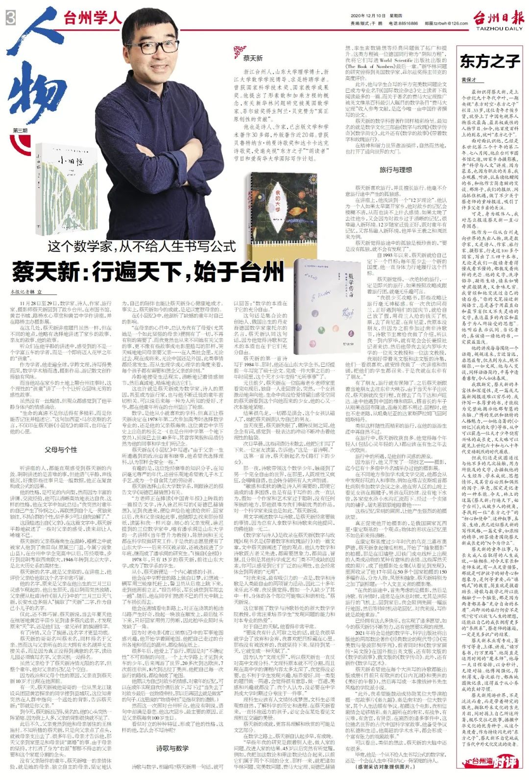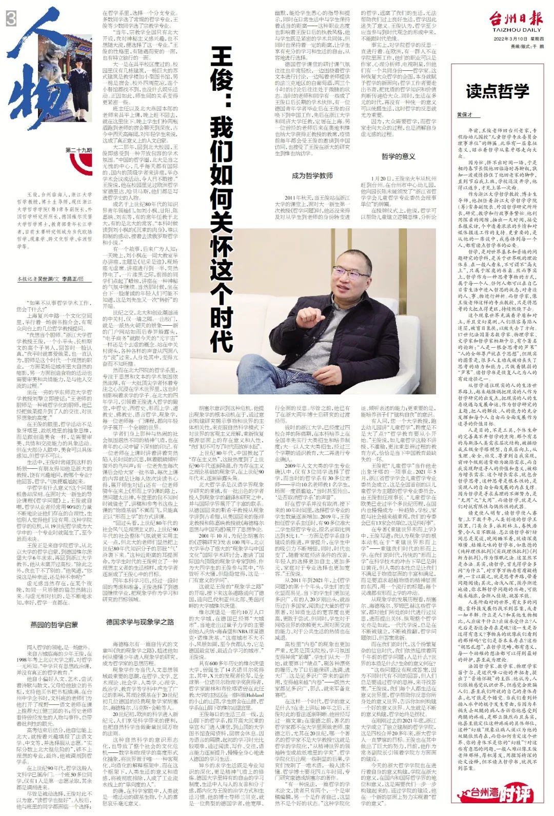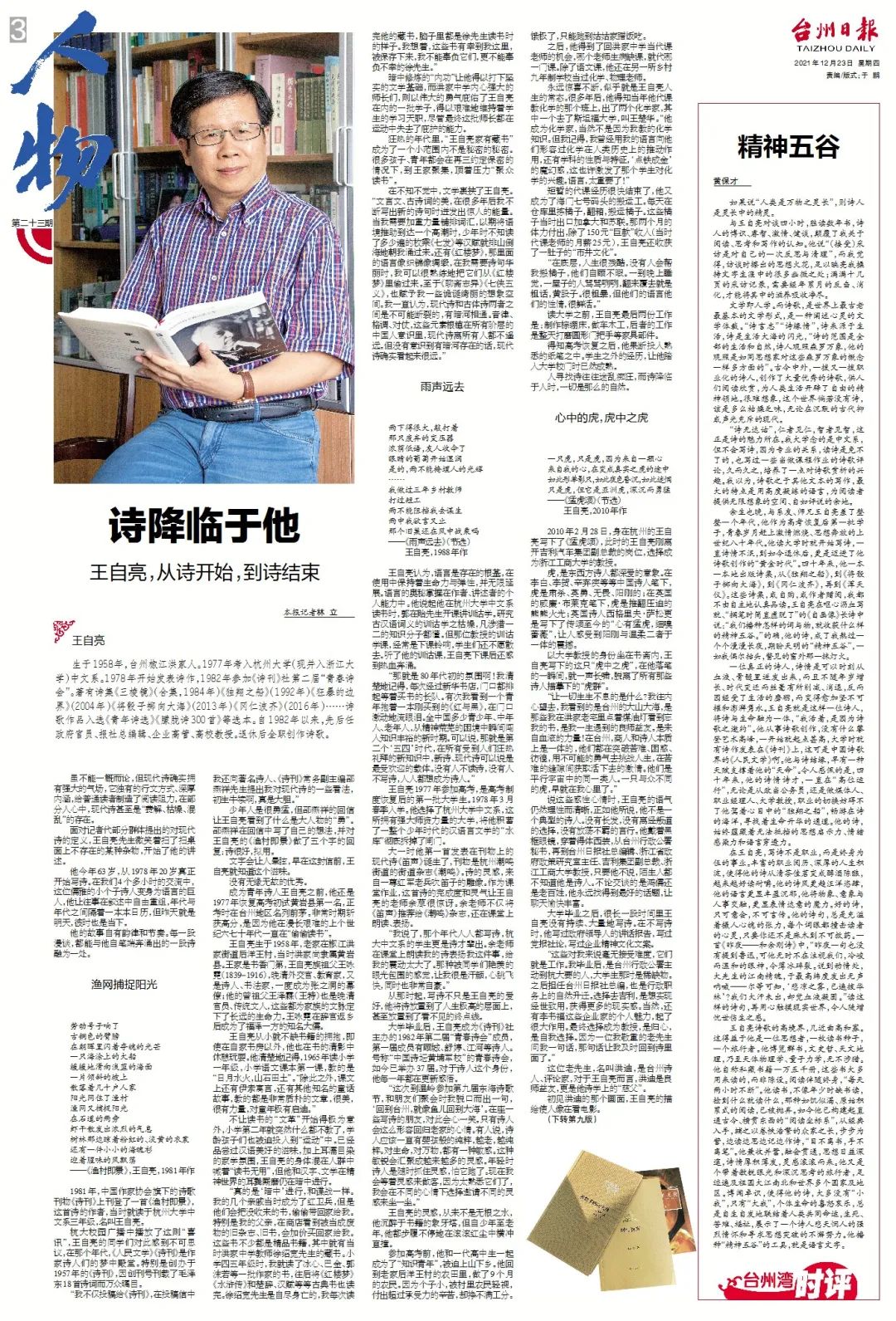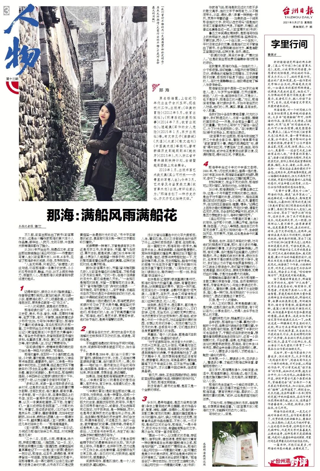 2020年11月开版的“人物”,至今已推出33期,报道了陈立旭、王淼、吴子熊、黄大树、詹耀良等一批各条战线中具有引领力、凝聚力、吸引力的“台州人”。它是人物报道的升级版,除了“一人一版”在报纸上推出,还试图聚合全媒资源,打通传播渠道,于融媒体语境中创新报道形式,探索个性化之路,提升“聚焦身边人、讲好身边事”的意义。