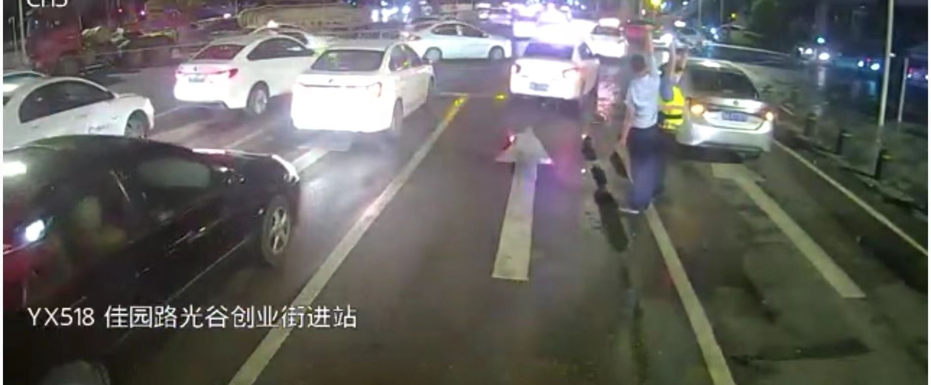 路口来来往往的车辆穿行而过,他们前前后后托举了电缆线38分钟。凌晨1时19分,消防应急队员赶到现场,经过处理后道路恢复畅通,张勇则回到车上继续运营。