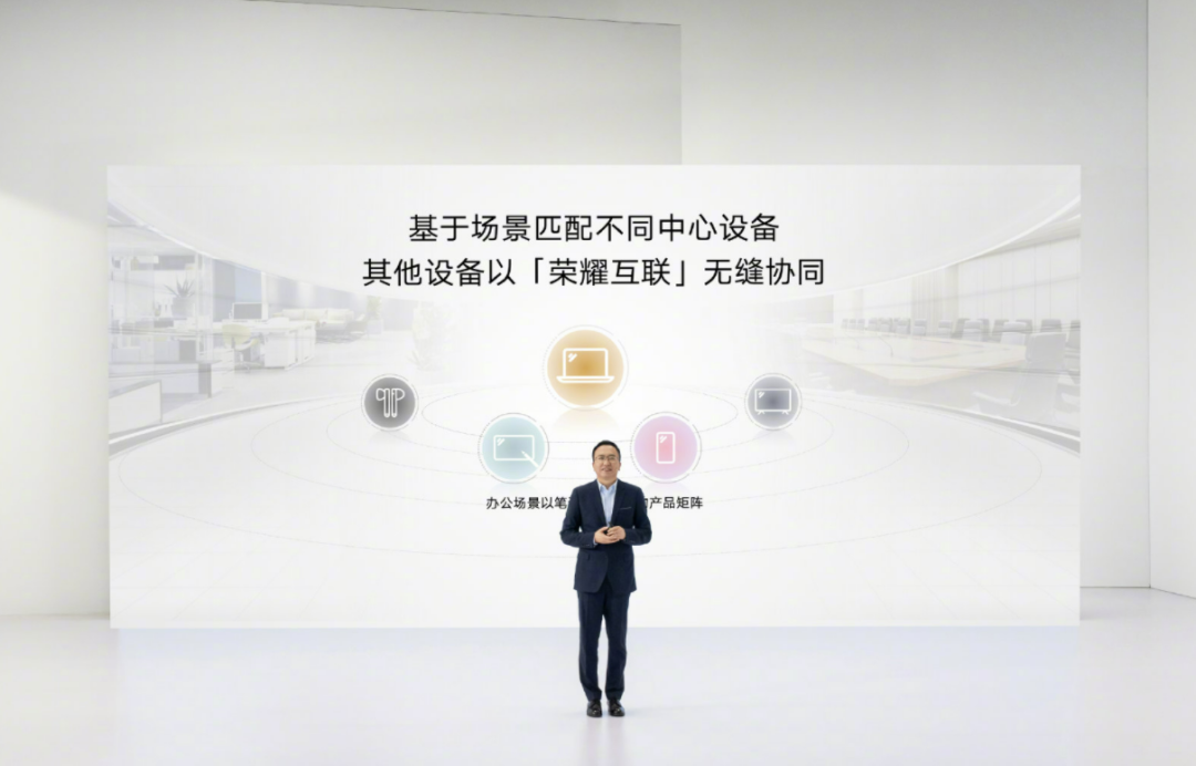荣耀终端有限公司CEO赵明在发布会上表示:“荣耀打造‘以人为中心’的跨应用、跨设备的智慧生活解决方案。基于场景匹配不同的中心设备,其他设备则可以无缝协同中心设备,给消费者带来无痕流转的全场景体验,从而服务消费者愈发多元的使用场景。”