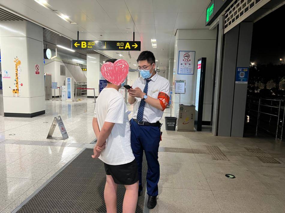 晚11点,11号线博览中心站下行末班车出清后,站务员宋佳津在巡视过程中发现一名男孩在站台上徘徊不定,手足无措。联想到寻人信息,宋佳津立即上报给车站控制室。值站班长刘晓欣与客运值班员胡可姗随即赶至现场,但是男孩支支吾吾不愿多说,胡可姗对比他手中的琴岛通卡,发现他就是家人正在苦苦寻找的孩子。车站立即将情况上报至地铁控制中心及民警,成功与孩子父母取得联系。
