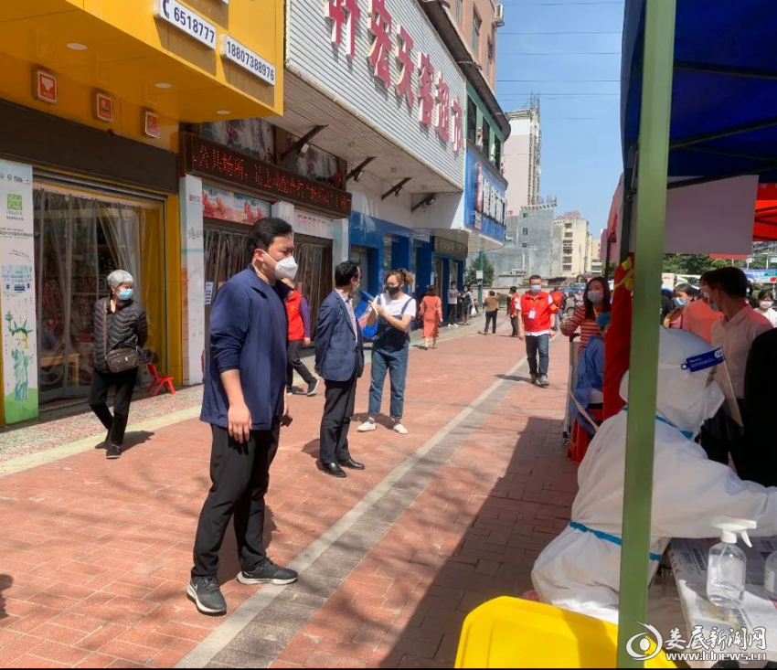 (4月8日,娄星区委常委、统战部部长周庶舟在丹阳社区1网格督导核酸检测工作)
