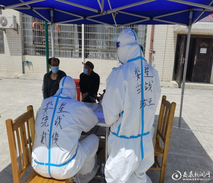(娄星统战人化身“大白”在丹阳社区4网格登记核酸采样信息)