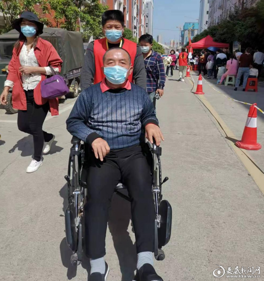 (区委统战部志愿者帮扶群众走绿色通道完成核酸检测采样)