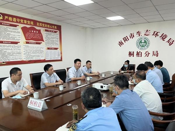 近日,南阳市生态环境局党组书记刘建光带队到桐柏县调研指导生态环境保护工作,并召开座谈会。市生态环境局党组成员、副局长尹永正等陪同调研。市生态环境局桐柏分局中层以上干部参加座谈会。