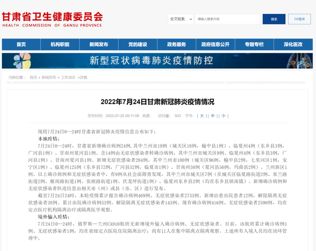 现将7月24日0—24时甘肃省新冠肺炎疫情信息公布如下: