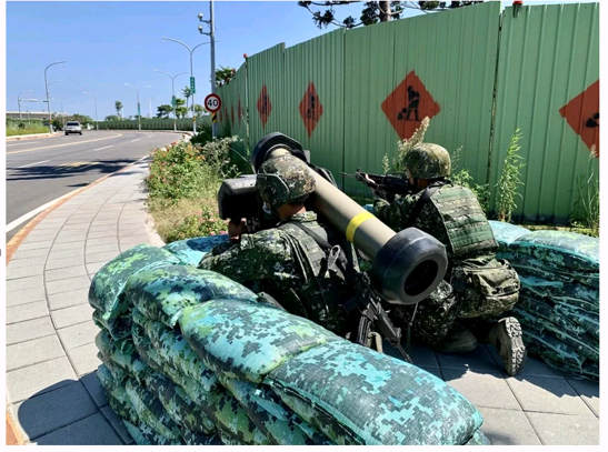 此外,该科目还模拟“敌军沿路推进、准备包围台北港”。台陆军在沿途各路口部署“标枪”反坦克导弹“截击解放军装甲车辆”。在大楼高点则部署“毒刺”肩扛式防空导弹与反装甲武器“从事城镇巷战”,模拟“全力截击登岸共军”。