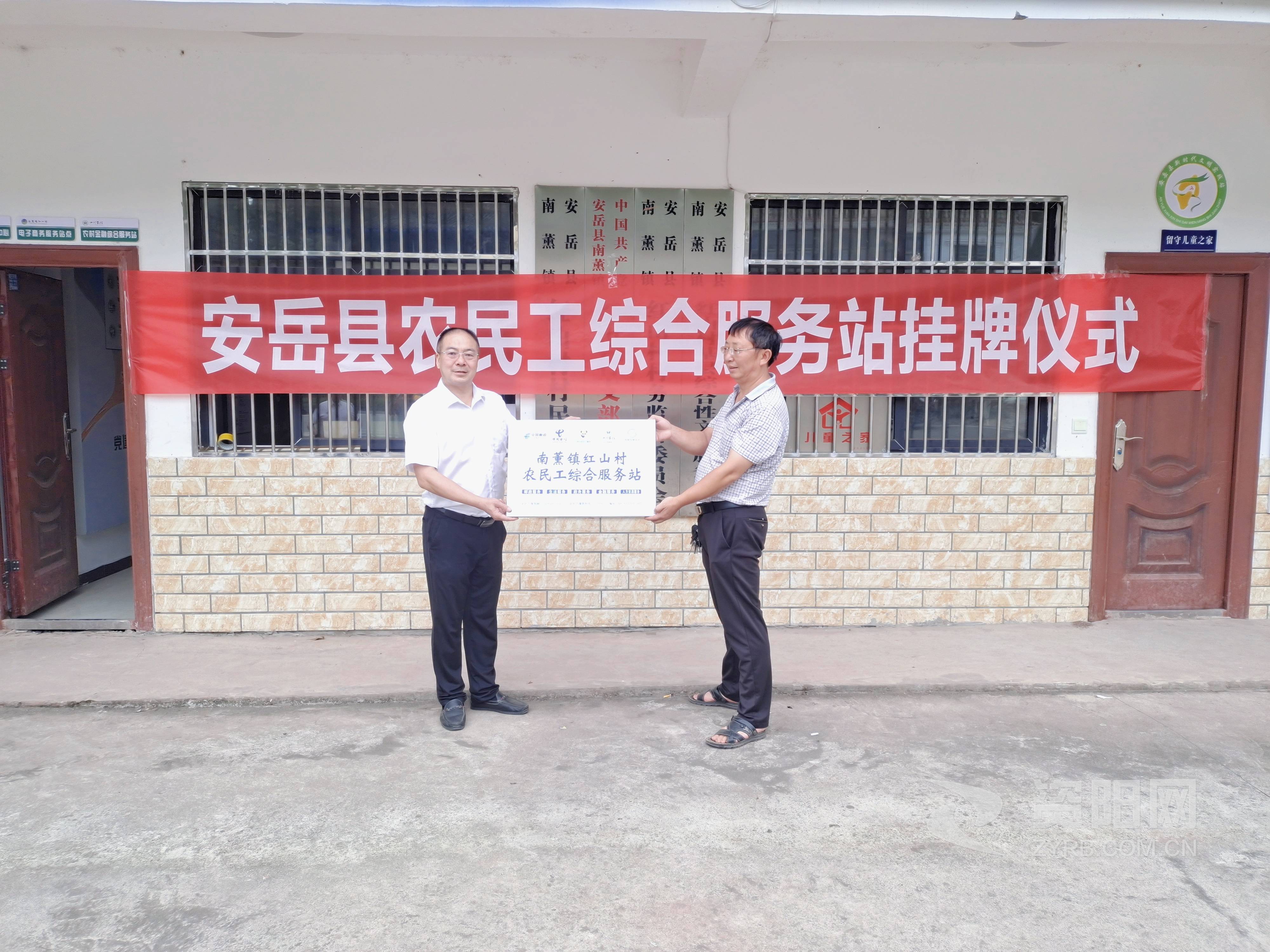 近日,安岳县首批集“政务服务+电信服务+邮政服务+金融服务+人力资源服务”五位一体的村(社区)农民工综合服务站在安岳县周礼镇龙兴村和南薰镇红山村正式挂牌运行。