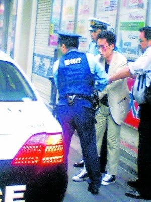 2008年,加藤智大(中)被警察逮捕现场。