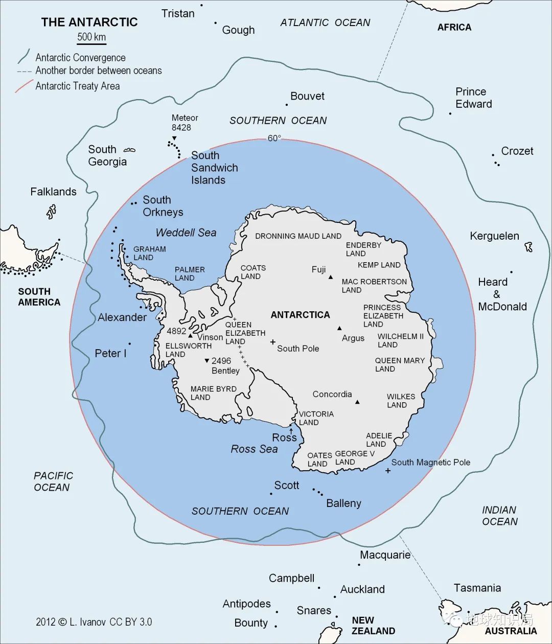 南极洲周边海域则被分到太平洋、大西洋、印度洋